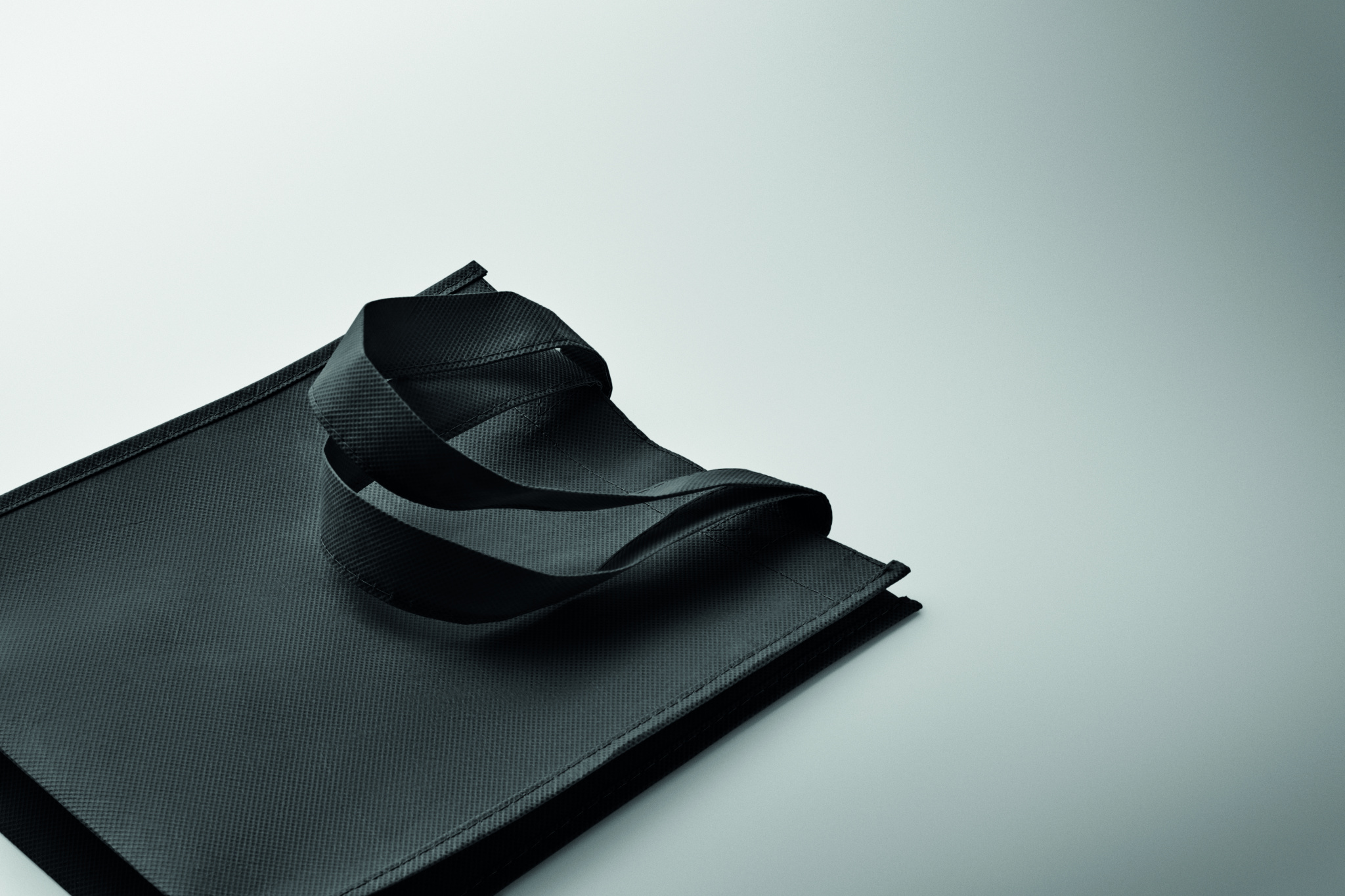 Pieni lahja- tai herkkupussi RPET-kuitukankaasta, jossa lyhyet kahvat ja sivukaitaleet. 80 g/m².