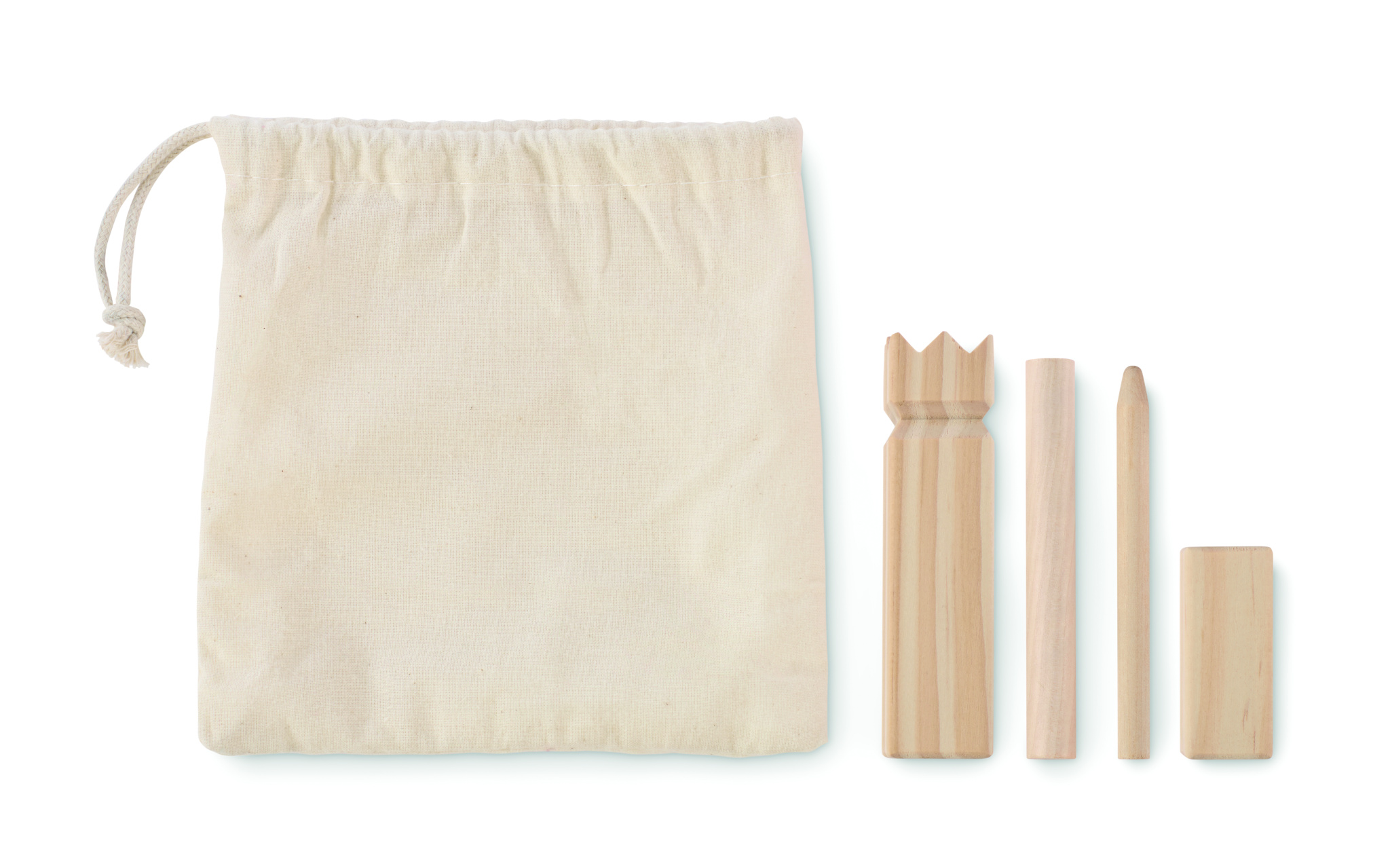 Pieni männynheittopeli puuvillaisessa kiristysnauhakassissa.