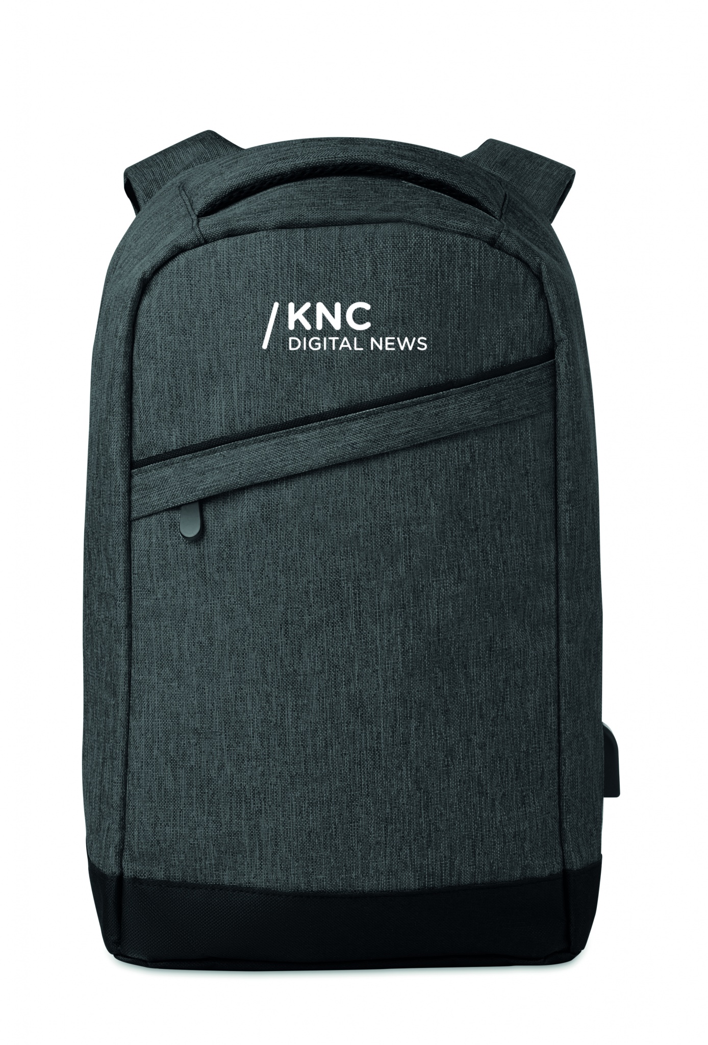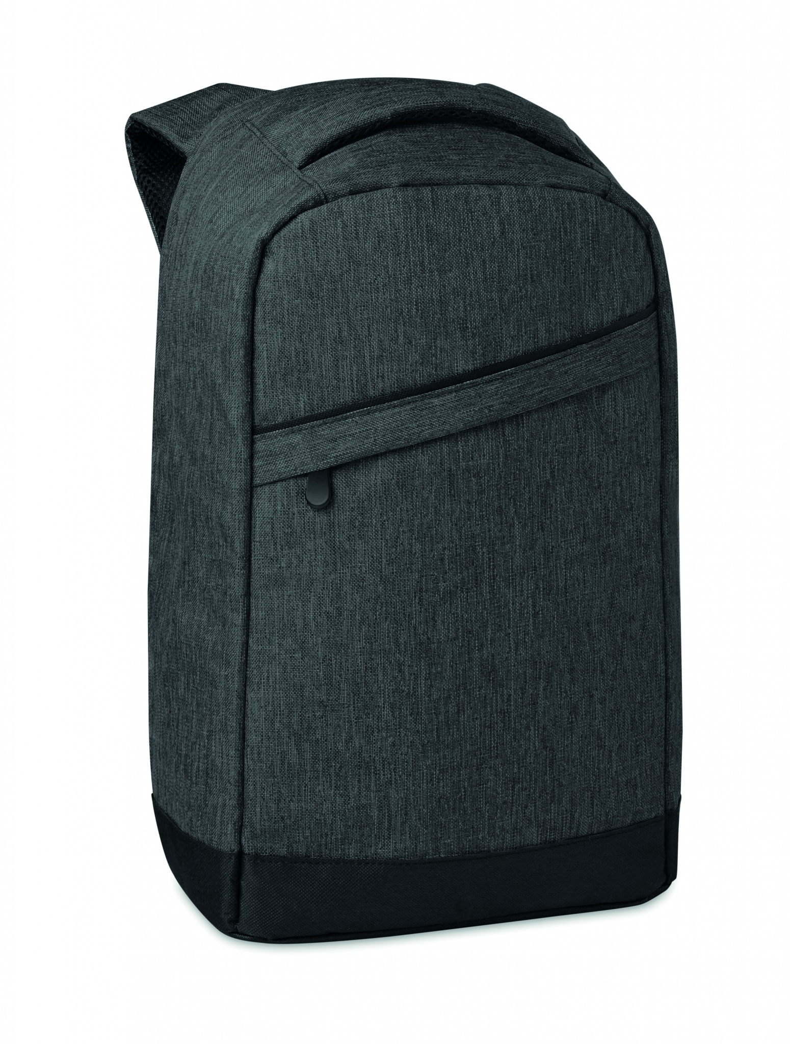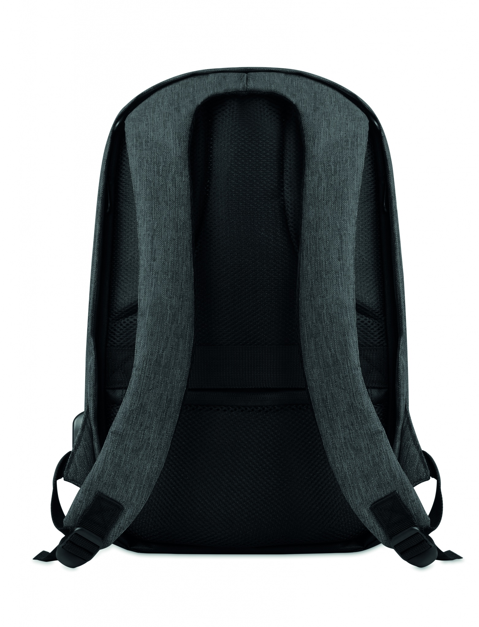 600D- 2 sävyinen polyesterireppu, pehmustetuilla olkahihnoilla. Sisältää yhden 13 tuuman kannettavan tietokoneen taskun ja USB-latauskaapelin. Vetoketjullinen tasku repun selkäosassa.