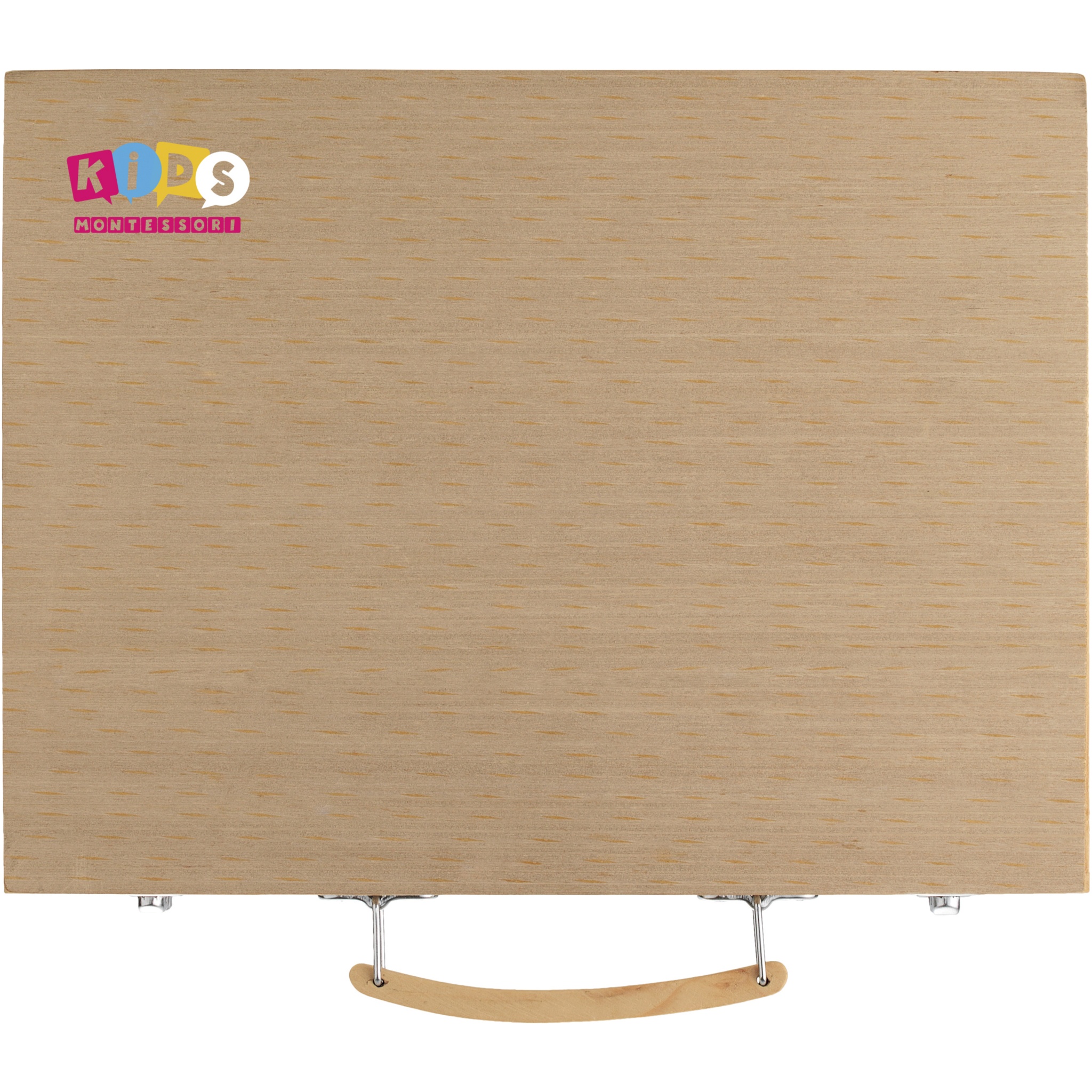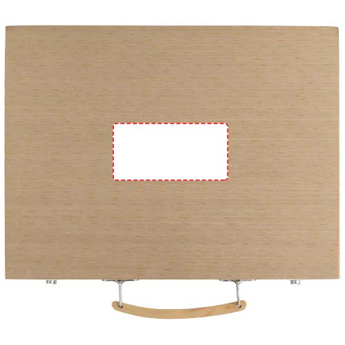 Setti, jossa on 12 vesiväriä, 12 värikynää, 12 värikuulakärkikynää, 12 öljypastellia, 12 väriliitua, paletteja, liima, kumi, teroitin, HB-lyijykynä ja sivellin. Puulaatikossa. Painatus ei mahdollinen eri osiin.
