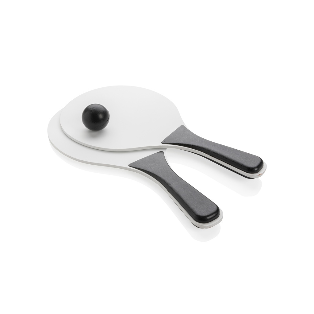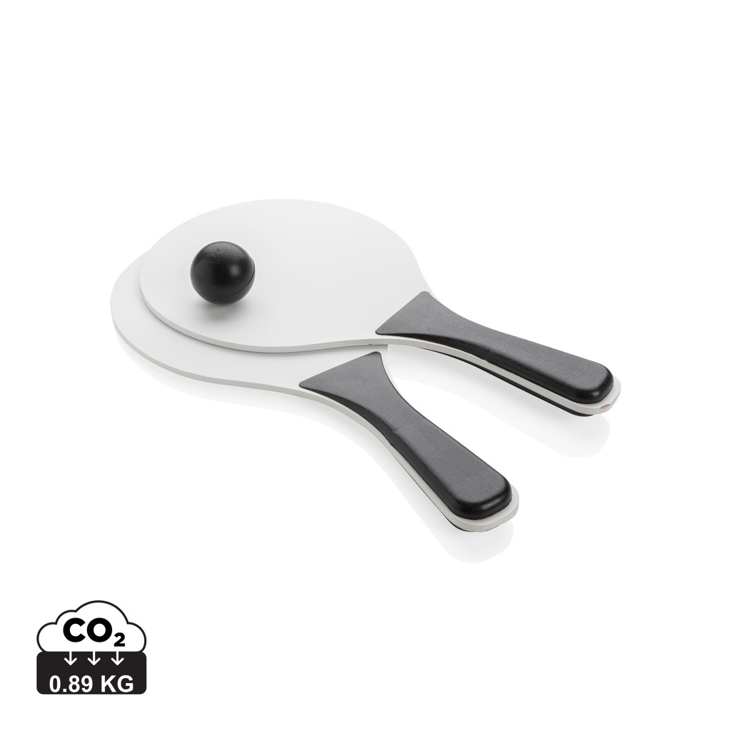 MDF rantapallopelisetti PP-kahvalla. Pakattu verkkoon. Sisältää 1 pallon.