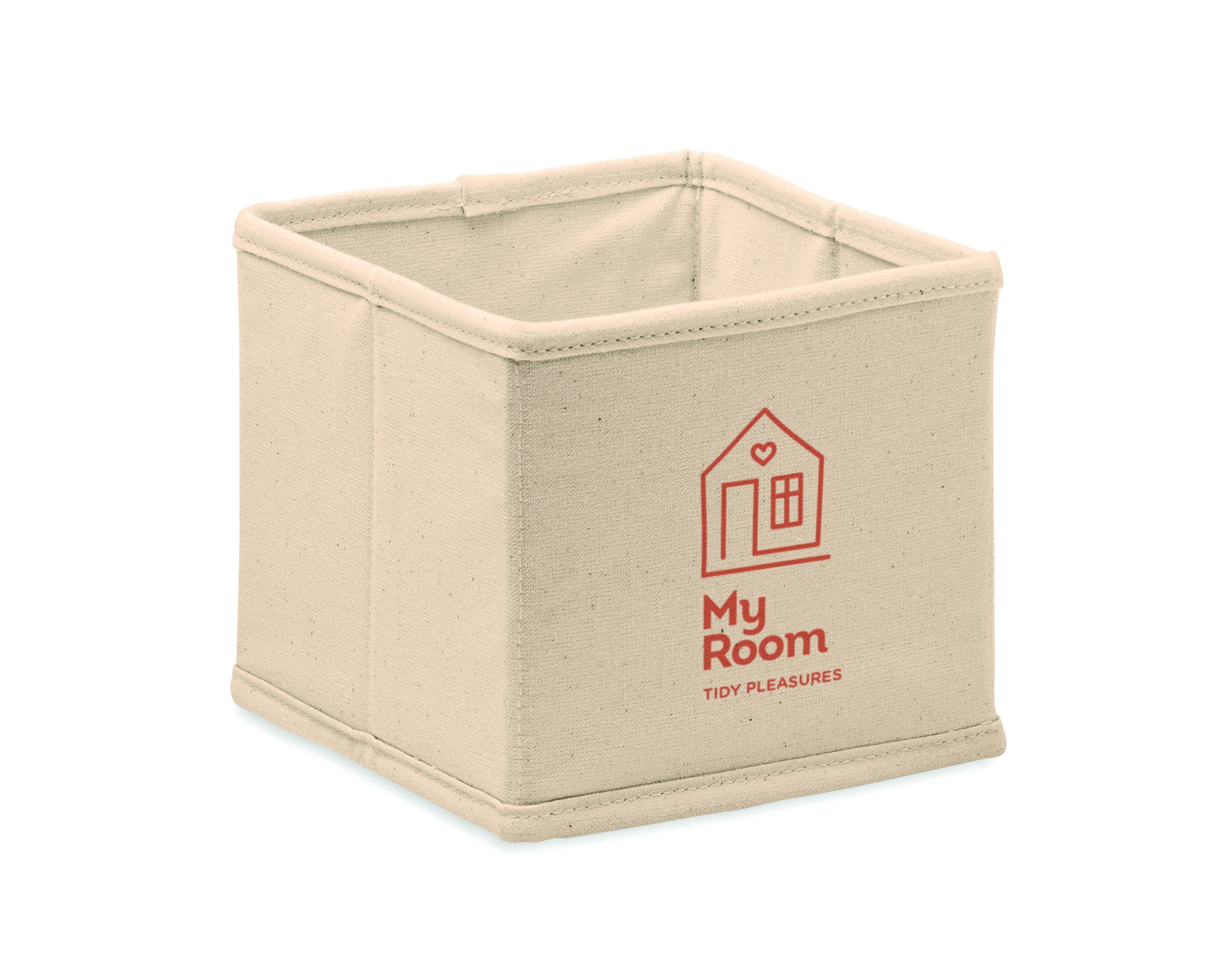 Pieni kokoontaitettava tarvike- tai säilytyslaatikko puuvillaa (220 gr/m²). Toimitetaan puuvillaisessa (140 gr/m²) vetoketjupussissa.