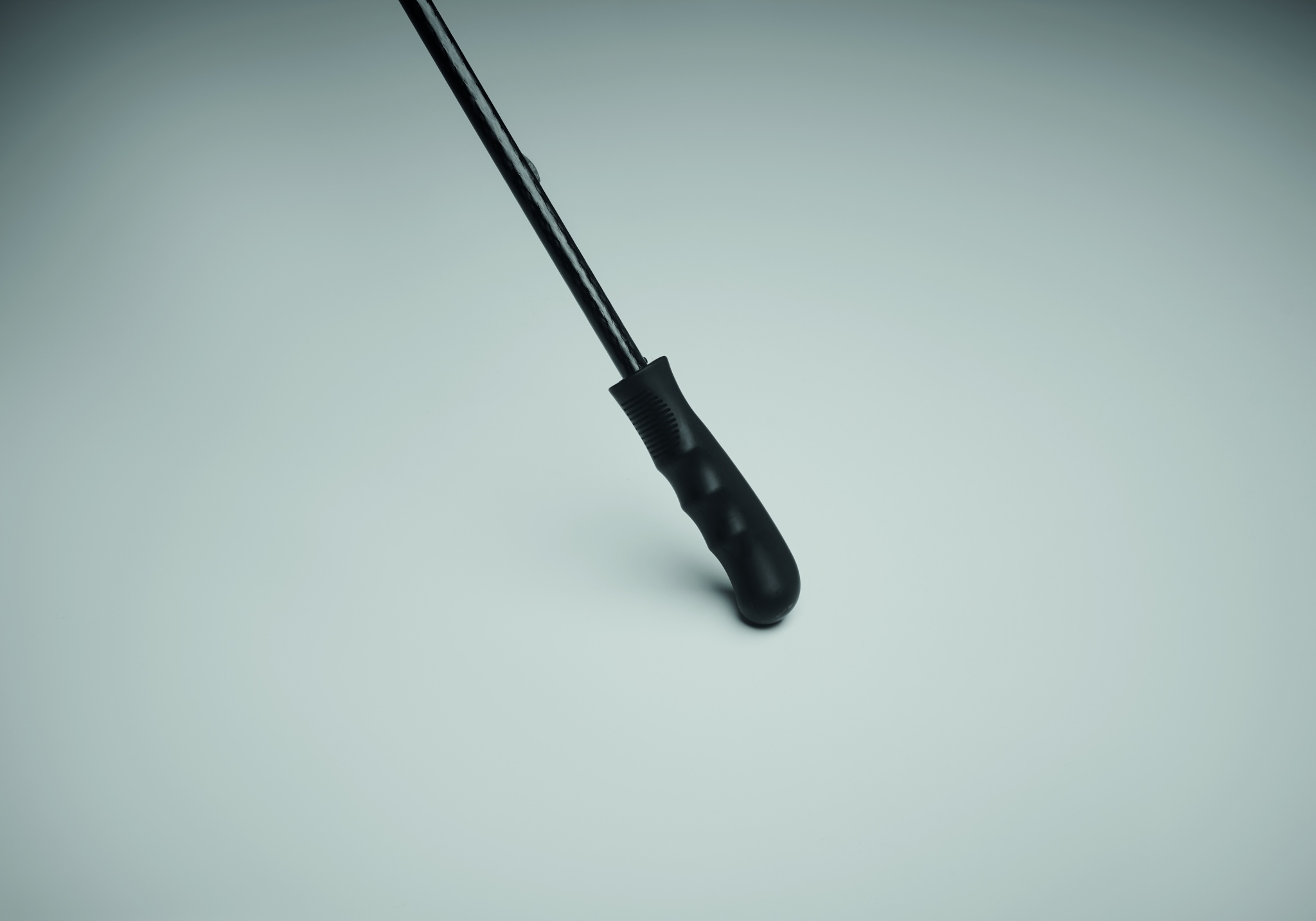 30 tuuman käsin avattava tuulenpitävä sateenvarjo 190T pongee- (4 paneelia) ja heijastinmateriaalista (4 paneelia). Varjossa on lasikuiturunko, -ruoteet ja -varsi. Suora ABS-kahva kumipinnoitteella. Manuaalinen sulkeminen.