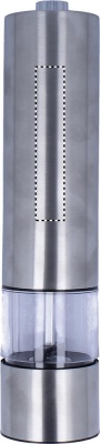 Ruostumattomasta teräksestä valmistettu sähköinen suola- tai pippurimylly. Paristot eivät sisälly toimitukseen.