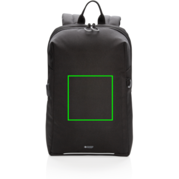 Tämä tyylikäs tietokonereppu on tarkoitettu sekä liike- että lomamatkoille. Repussa on pehmustettu 15.6" tietokonetasku laitteesi suojaamiseksi, matkalaukkuhihna sekä USB A lähtö. Sivussa helppopääsyinen tasku RFID-suojauksella. Etuosassa heijastava turvanauha. PVC-vapaa. AWARE™-jäljitysaineella, jolla aidosti kierrätettyjen materiaalien käyttö todennetaan. Jokaisen laukun valmistuksessa uudelleenkäytetään 22 PET-pulloa. 2% jokaisen myydyn Aware™ -tuotteen voitosta lahjoitetaan Water.org-järjestölle.