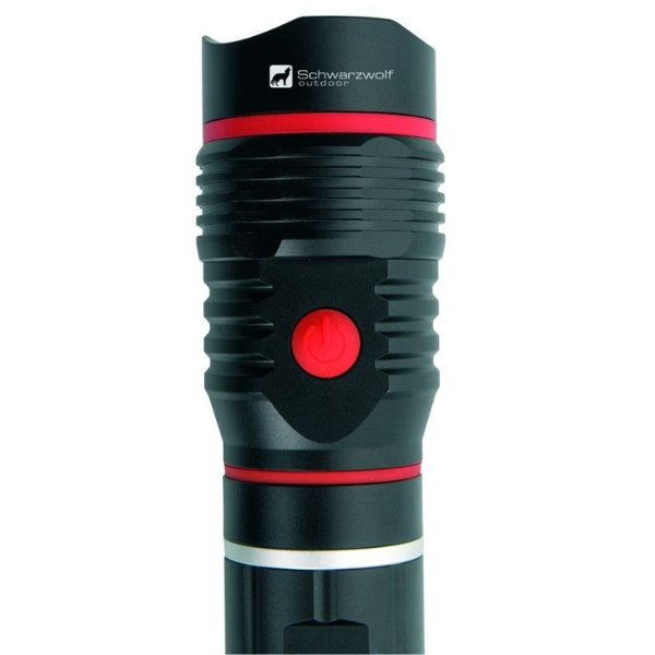 Ulkokäyttöinen metallitaskulamppu Schwarzwolf. Se sisältää Cree XPE -diodin ja jatkettavan COB-diodin, joka mahdollistaa erittäin intensiivisen valaistuksen. Taskulamppujen päässä on magneetti ja koukku ripustamista varten. Valoteho: Cree XPE -diodi 130 lumenia, COB-diodi 180 lumenia. Mukana paristot 4 × AAA.