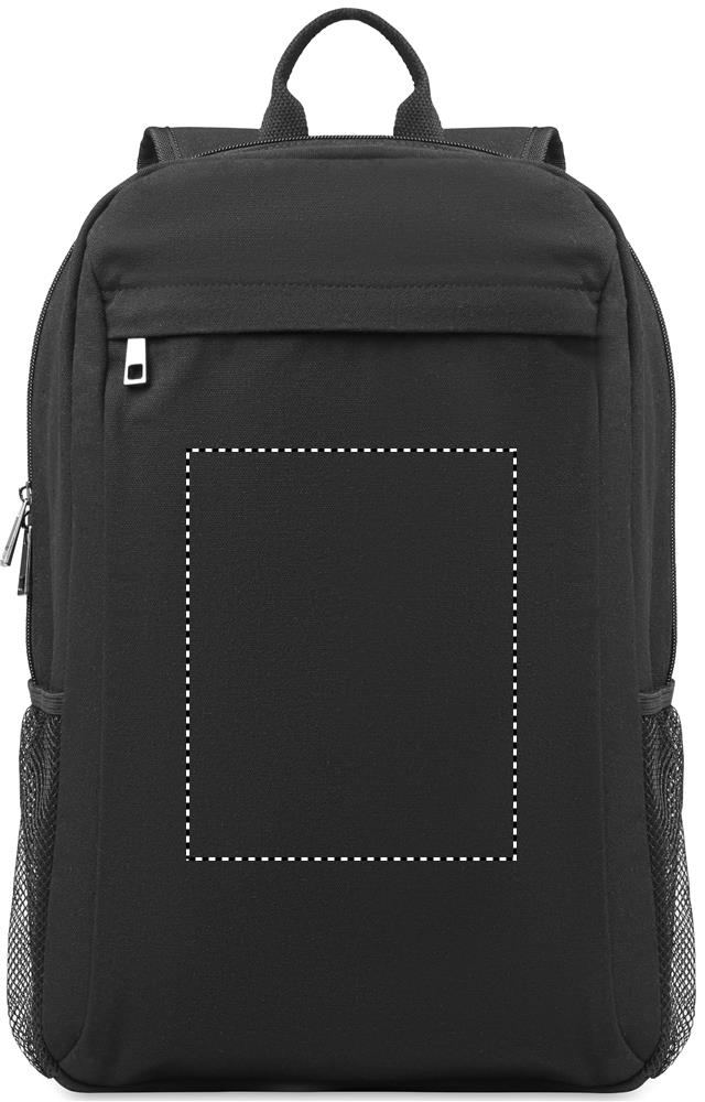 Tietokonereppu 340 gr/m² pestyä canvasta, 15 tuuman tietokoneelle. Pehmustettu selkä ja olkahihnat. Selkäpuolella hihna, jolla laukun saa vetolaukun kahvaan.