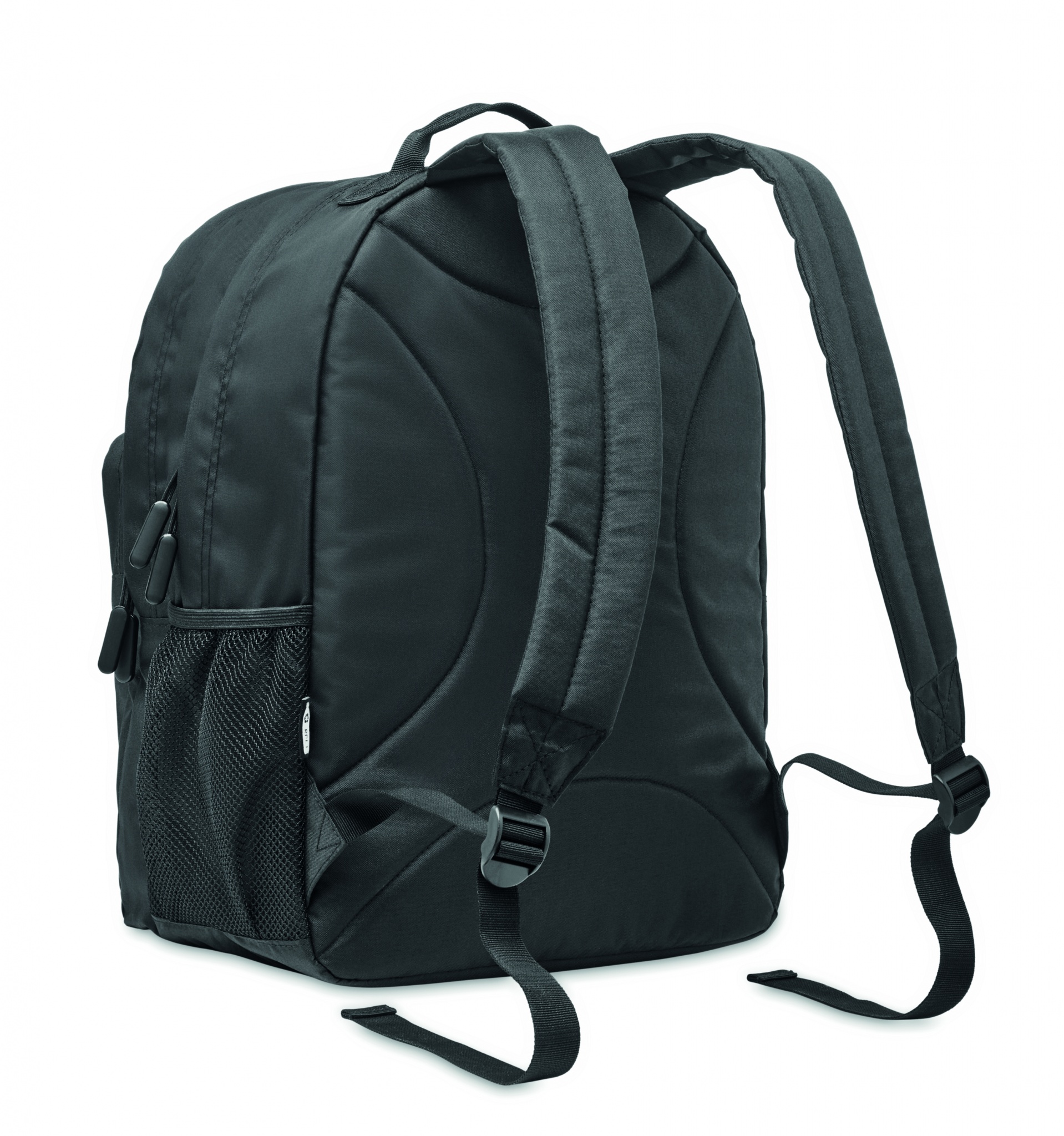 Tietokonereppu 15 tuuman tietokoneelle. Valmistettu 300D RPET polyesteristä. Repussa on 2 suurta vetoketjullista lokeroa, kaksi vetoketjullista etutaskua ja verkkotasku sivulla. Pehmustetut selkä- ja olkahihnat.