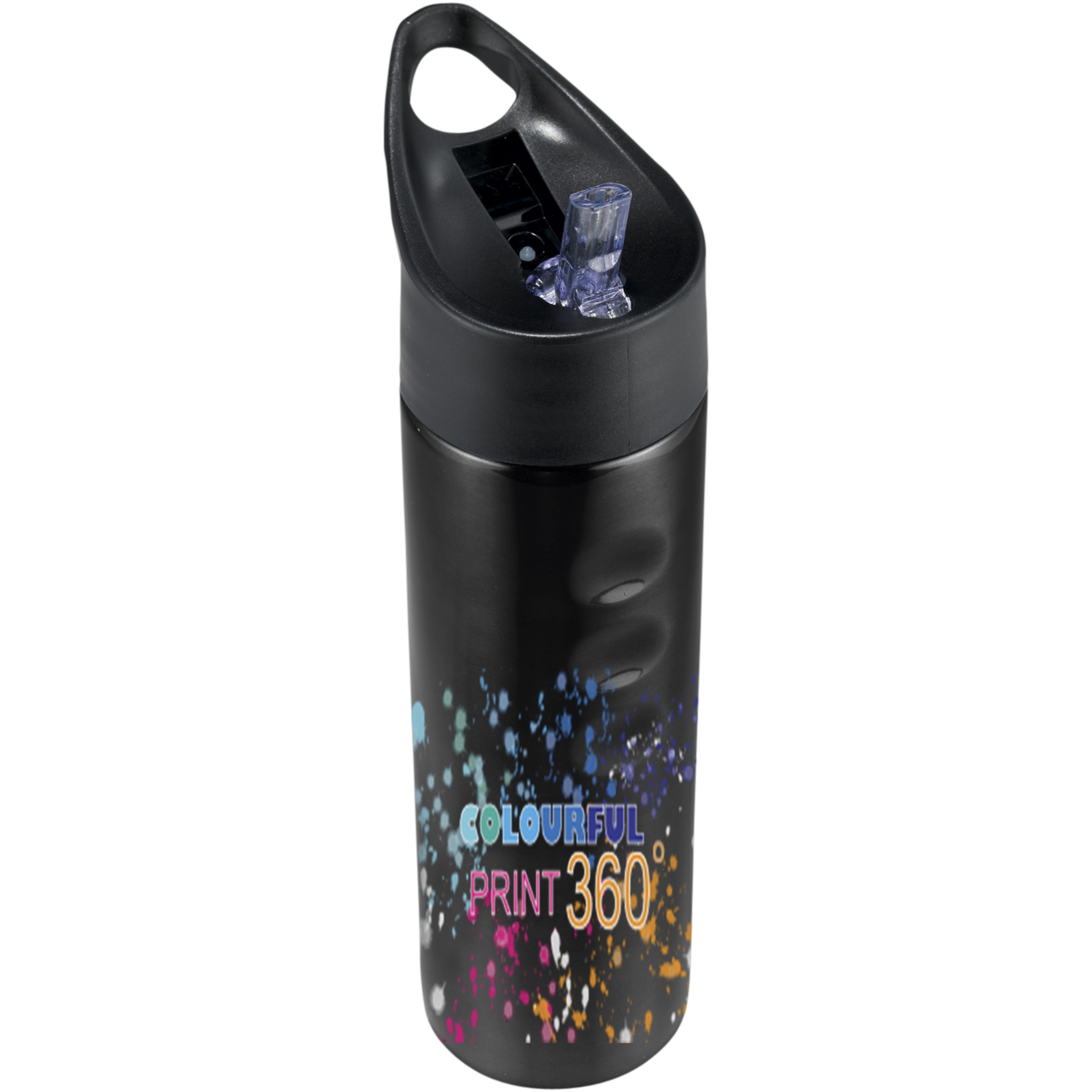 Yksiseinäinen. Kierrekorkki, jossa vuotamaton käännettävä suukappale. Sormigripit sivuissa. Kapasiteetti 750 ml.