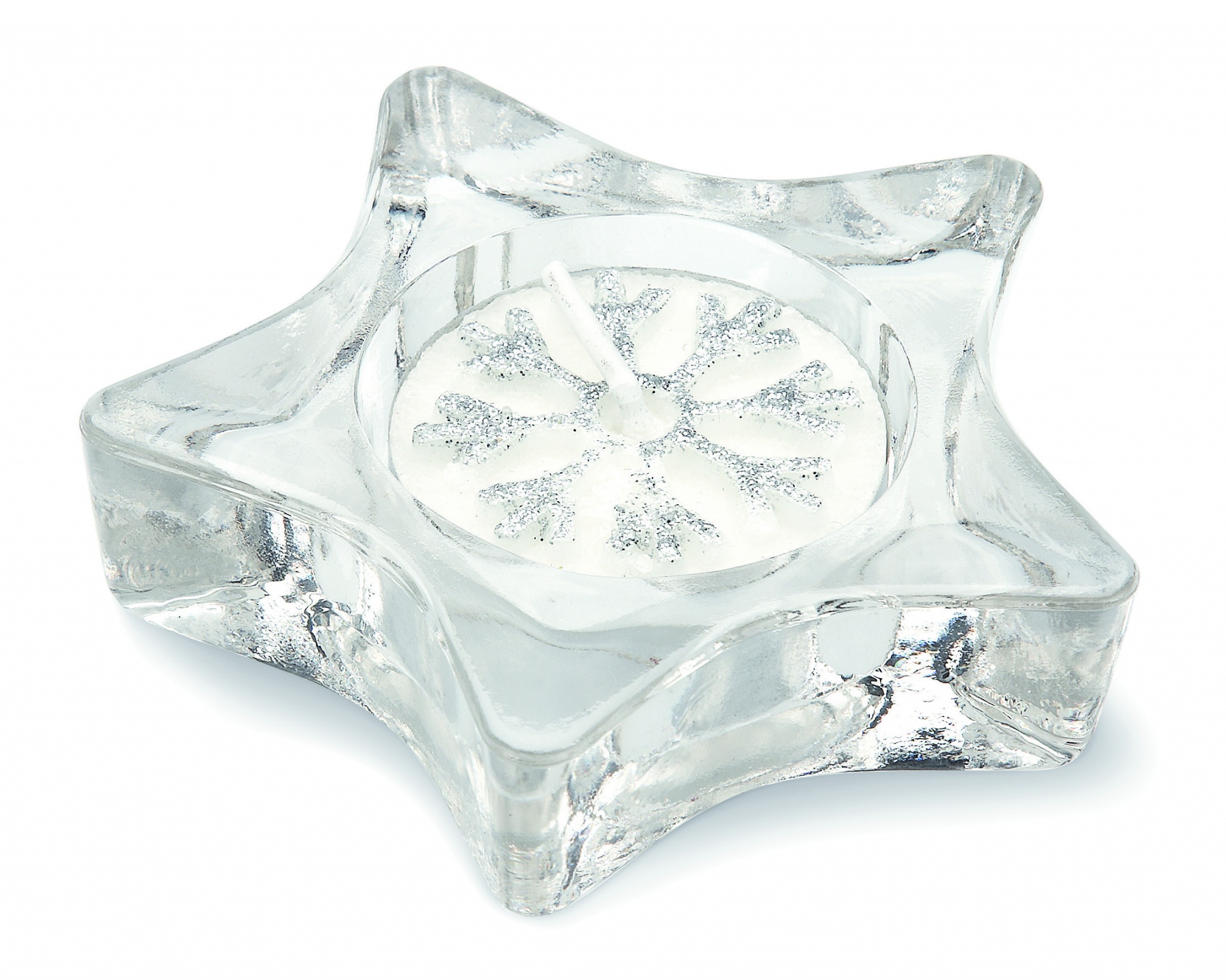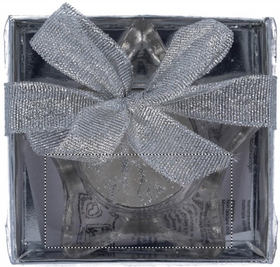 Tähdenmuotoinen tuikkuteline, pakattuna hopeaan lahjapakkaukseen. Tuikkukynttilä sisältyy toimitukseen.
