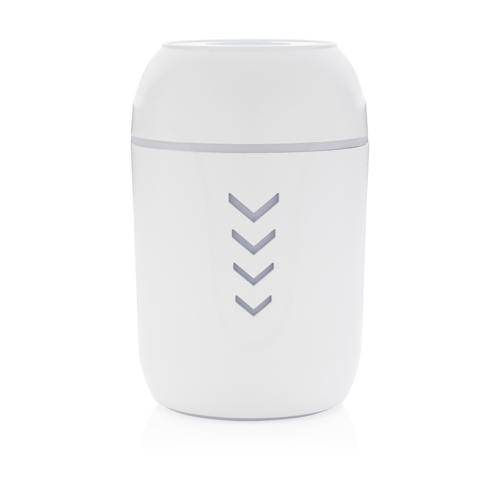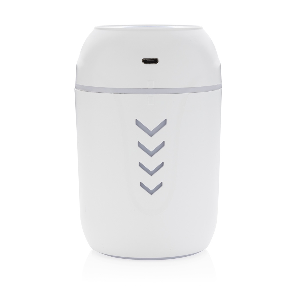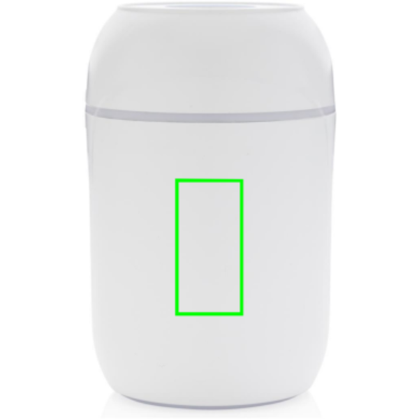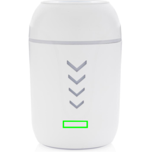 Ilmankosteuttaja valmistettu kestävästä ABS-muovista. Sisäänrakennettu UV-C valo, joka näyttää hyvältä millä tahansa pöydällä. Ilmankosteuttaja tuottaa höyryä ja pitää näin sisäilman optimaalisena. Talvella tuote pitää huolen, että ilma ei ole liian kuivaa, ja kesällä se viilentää. Hiljaisen äänen vuoksi tuote sopii myös yölliseen käyttöön. Sisäänrakennettu UV-valo tappaa jopa 99.9% vedessä olevista mahdollisesti harmillisista bakteereista. Sisältää kaksi ylimääräsitä puuvillatikkua alkuperäisen vaihtamiseen. Yksi puuvillatikku kestää käytöstä riippuen n. 8 kk. Tilavuus 200ml, jatkuvalla käytöllä kestää n. 4 tuntia. UV-C aallonpituus 270nm-280nm. UV-V -vlao aktivoituu vain, kun tuote on suljettu. Sisältää 120cm pitkän PVC vapaan TPE latauskaapelin.