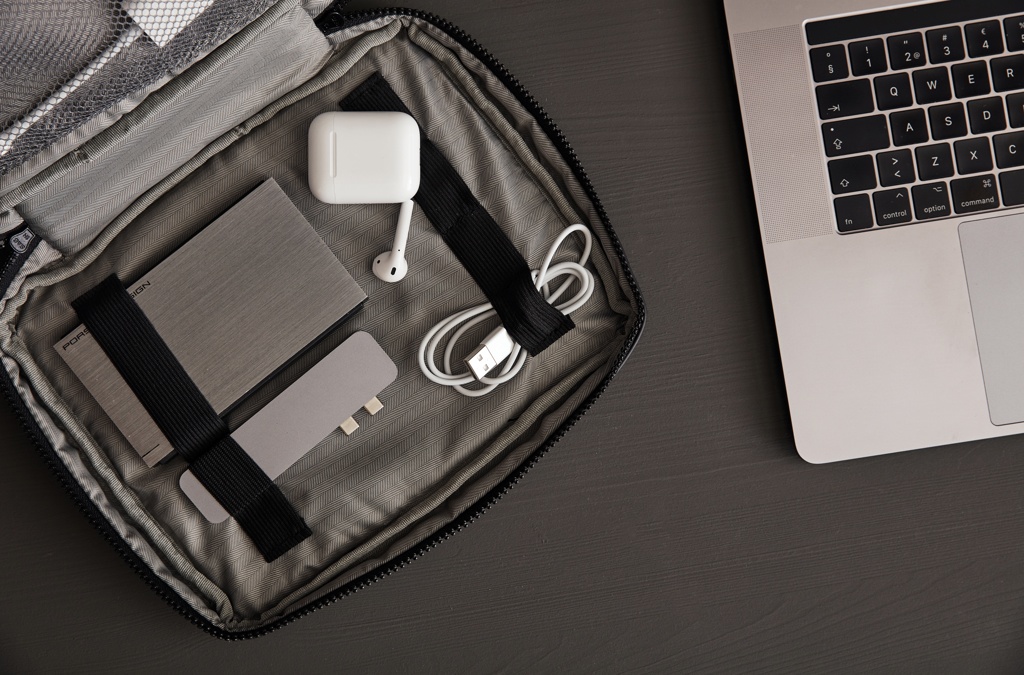 Pidä kaikki välttämättömät tarvikkeet lähettyvillä tämän kätevän järjestäjän kanssa. Siinä on tilaa kaikelle mitä tarvitset päivän aikana, kuten kuulokkeet, powerbank, kynät ja muistikirjat. Lyhyen sivun karabiinihaan avulla voit kiinnittää järjestäjän suurempaan laukkuun. Valmistettu nupukki PU:sta, joka tekee laukusta vettähylkivän.