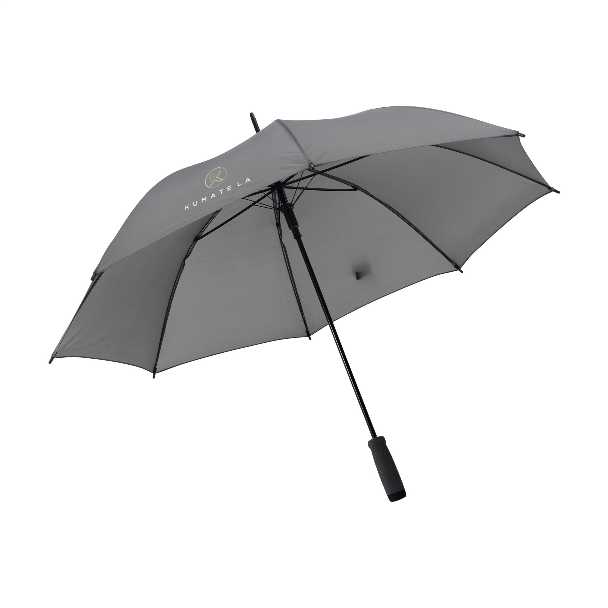 Skėtis su automatinėmis teleskopinėmis spyruoklėmis. Su 190T poliesterio stogeliu, stiklo pluošto rėmu, metaliniu kotu, minkštu putplasčiu rankena ir Velcro užsegimu.