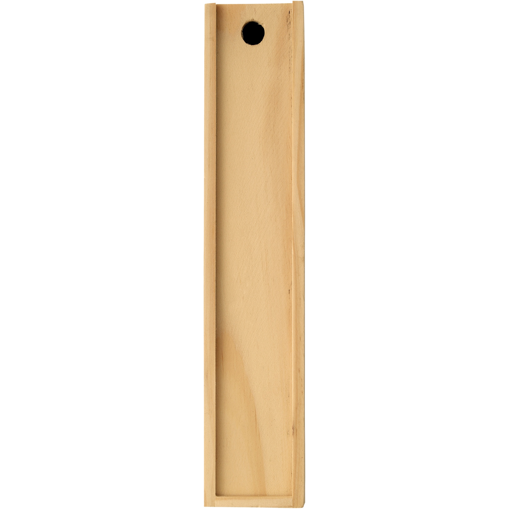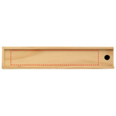 12 spalvinimo pieštukų medinėje dovanų dėžutėje su slankiojančiu dangteliu, kurios nugarėlėje yra liniuotės funkcija. Dekoratyviniai komponentai negalimi.