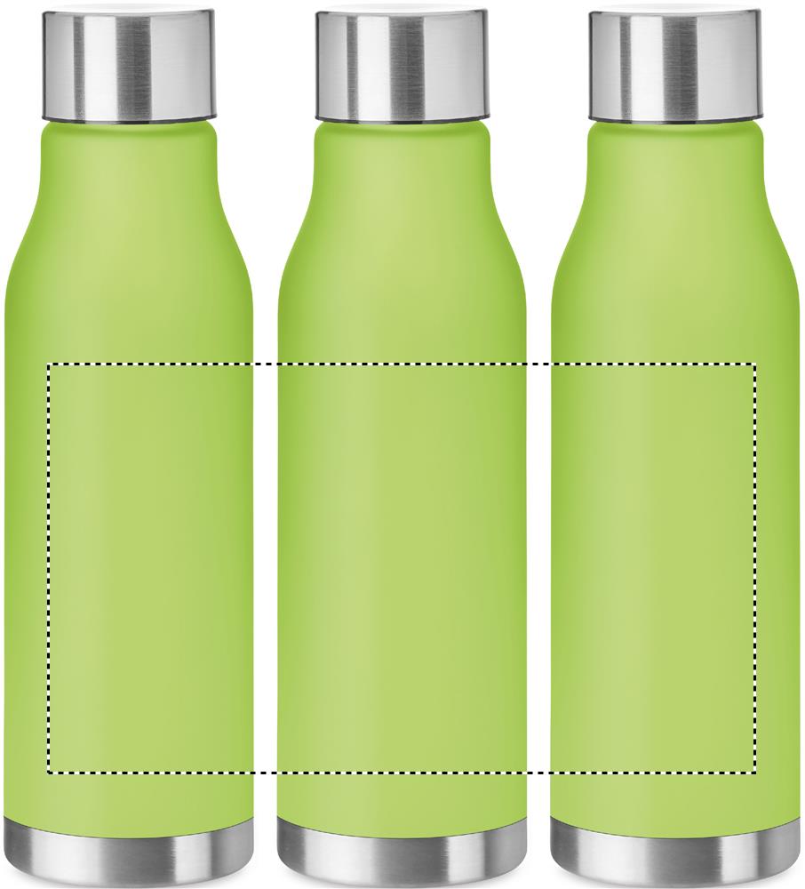 Geriamasis butelis iš RPET su gumuota apdaila (matinis skaidrus) ir nerūdijančio plieno dangteliu su vidiniu RPET dangteliu ir silikoniniu žiedu. Be BPA. Nesandarus. Talpa: 600 ml. Netinka gazuotiems gėrimams.