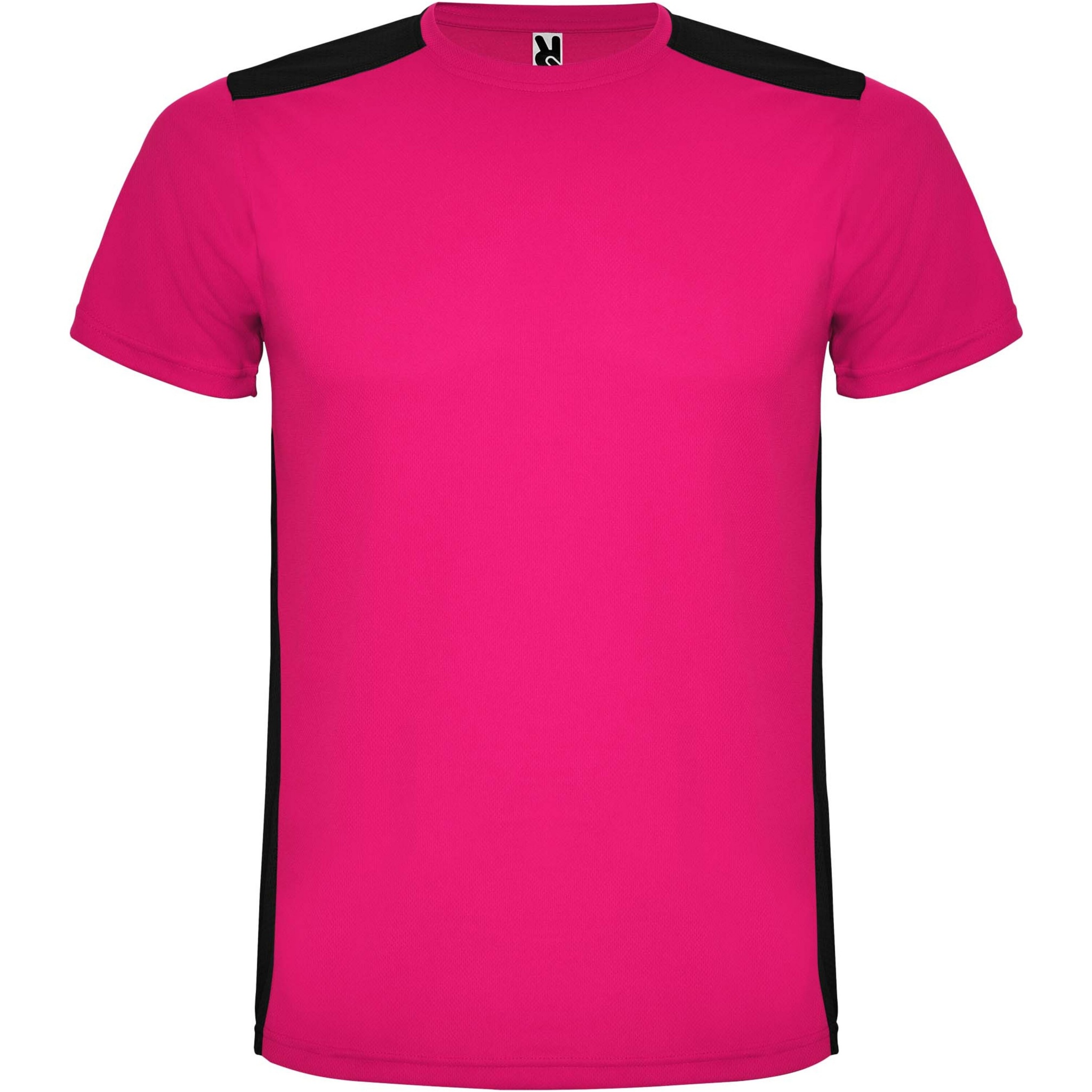 Viegli žūstošs, tehnisks un elpojošs audums. Apkalpes kakls. Divu poliestera audumu kombinācija uz muguras un pleciem. Bird's eye audums priekšpusē un elpojošs 3D sieta audums aizmugurē. Audums sagatavots mitruma uzsūkšanai. Dekoratīvs zigzaga šuves uz sāniem un pleciem. Muguras raksts nedaudz garāks. Noņemama etiķete.