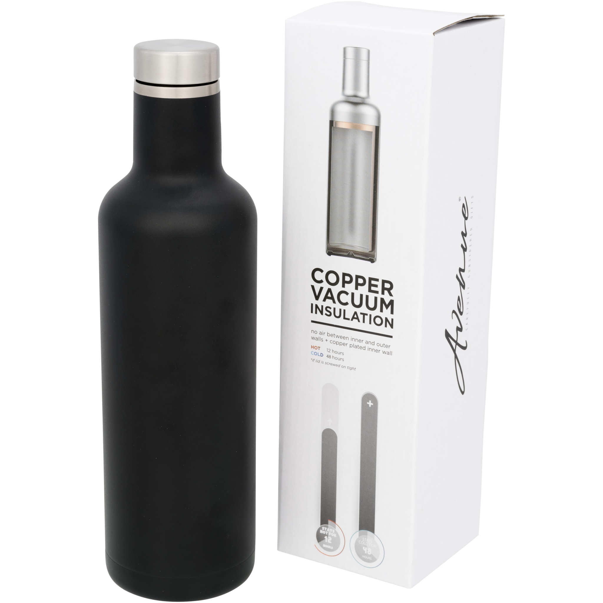 Saglabājiet savus dzērienus karstus 12 stundas vai aukstus 48 stundas, izmantojot Pinto vara vakuuma izolēto pudeli. Divsienu un izgatavots no 18/8 nerūsējošā tērauda ar vakuuma izolāciju un vara pārklātu iekšējo sienu nodrošina, ka jūsu dzēriens tiek uzturēts karsts vai ledus auksts atkarībā no jūsu prasībām. Uz ārējā korpusa ir izsmidzināms pulvera pārklājums. Tilpums ir 750 ml. Prezentēts Avenue dāvanu kastītē.