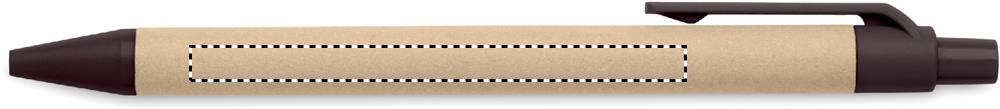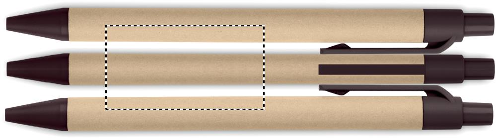 Spiedpogas papīra mucas lodīšu pildspalva ar daļām, kas izgatavotas no 40% kafijas miziņas un 60% ABS. Zilā tinte.