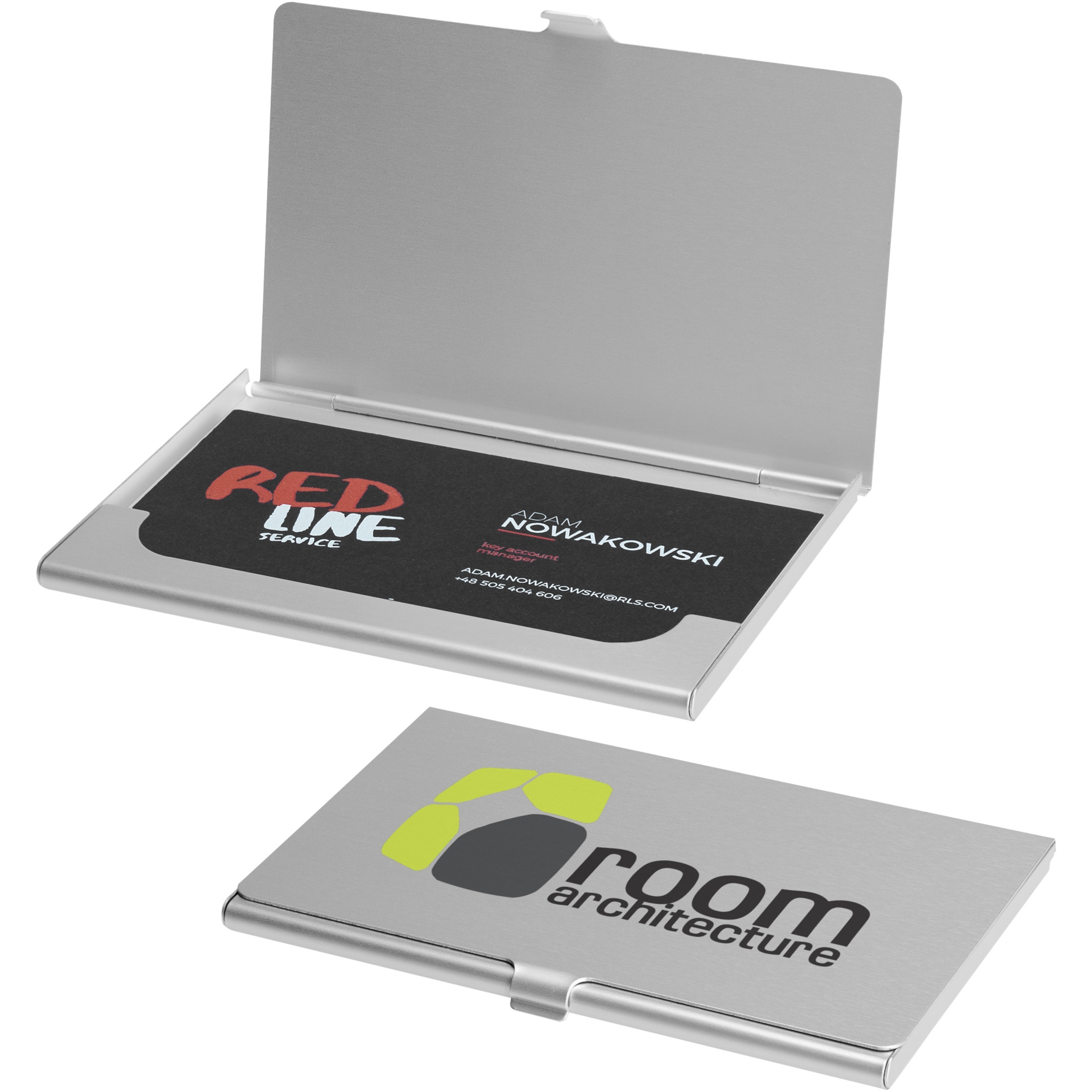 Alumīnija vizītkaršu turētājs. Ietilpst aptuveni 10 vizītkartes.