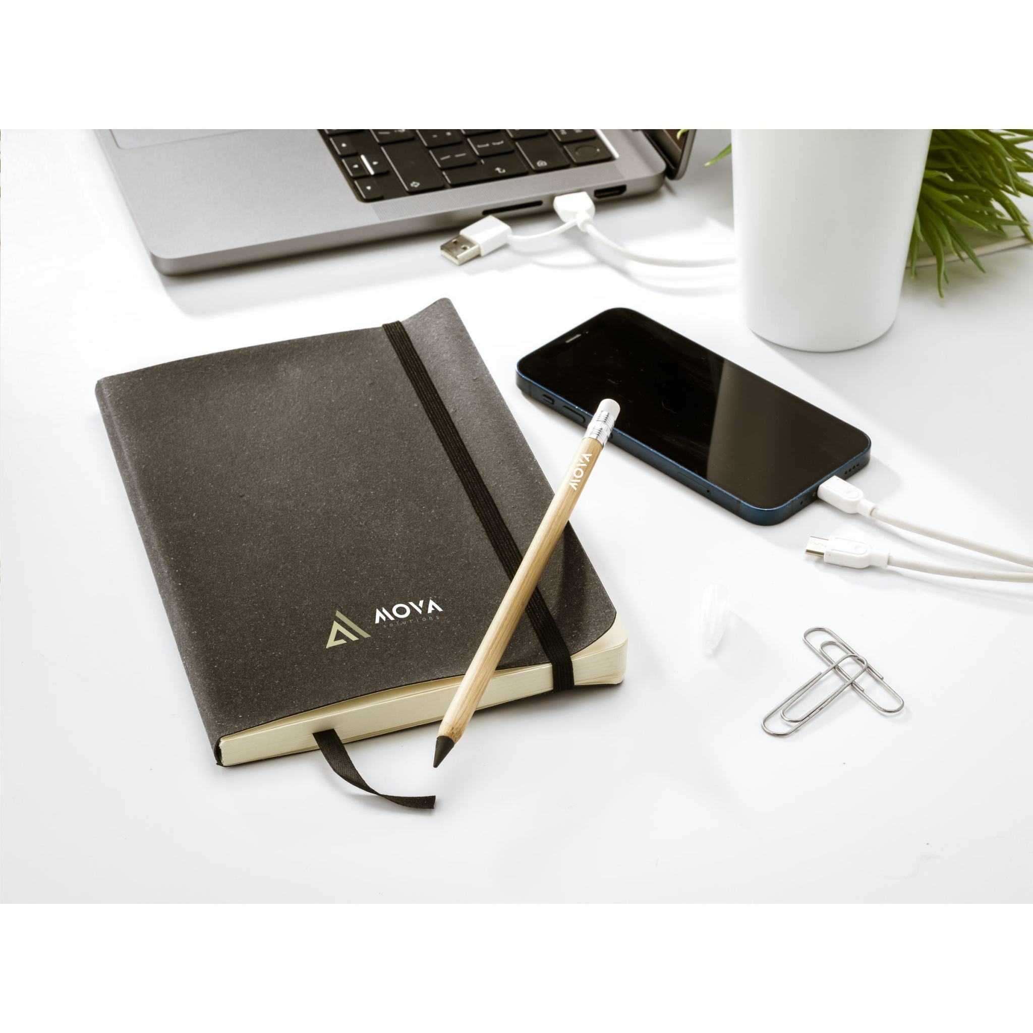 Uzlādes kabelis izgatavots no pārstrādāta ABS un pārstrādāta TPE. Ieeja: C tipa un USB-A savienotājs. Izvade: C tips un Lightning. RCS sertificēts. Kopējais pārstrādātais materiāls: 62%. Kabeļa garums: 120 cm. Katra prece tiek piegādāta atsevišķā aploksnē.