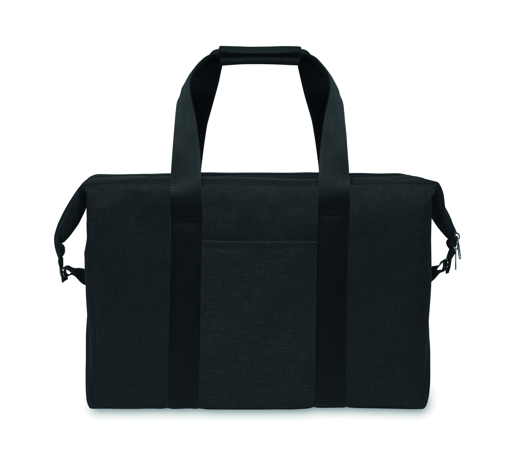 Cooler bag in RPET 300D cationic polyester. Isolation material: 3mm foam laminated with aluminium foil. Capacity 3L.