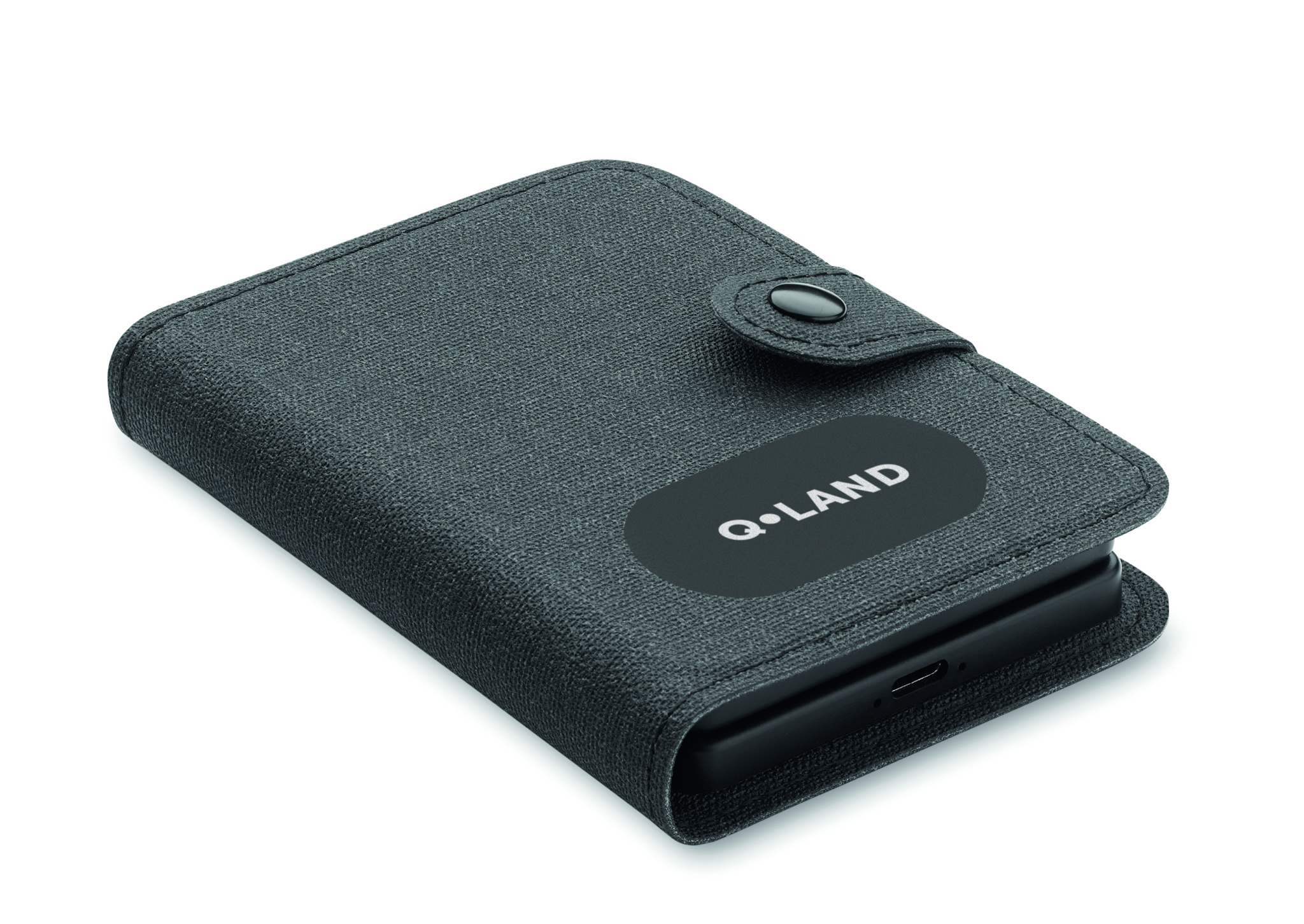 Cable connector set with wireless charger 15W and watch charger (Apple®only). 4 in 1 charging cable with ejector pin tool. Recycled PU cover, plastics in recycled ABS and recycled aluminium plate.
