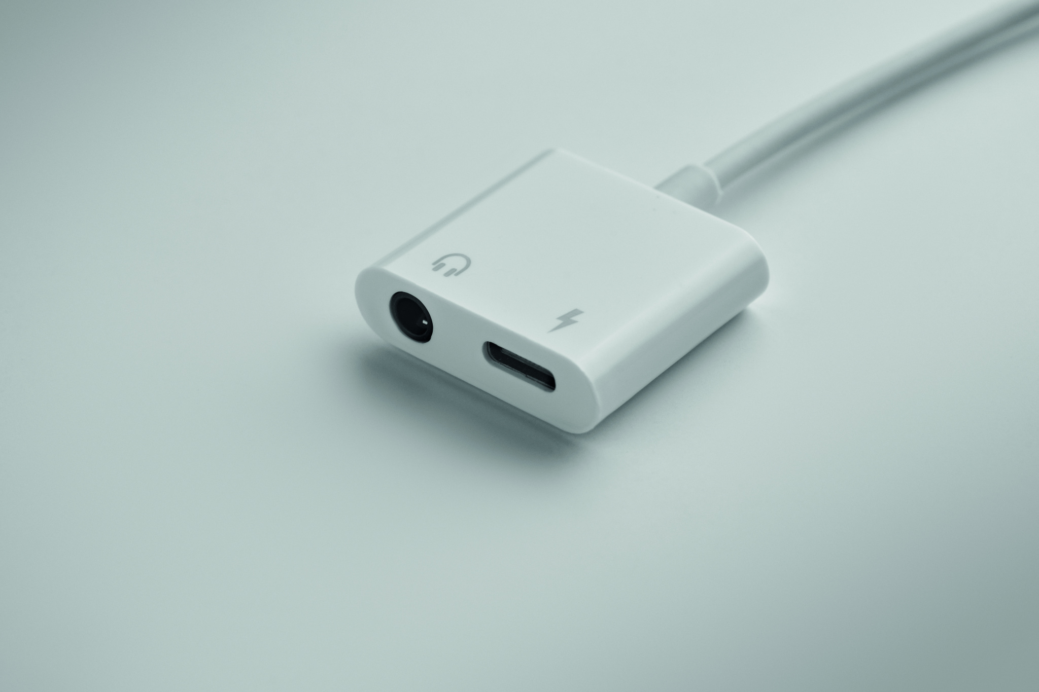 Multifunctional USB type-C and 3.5mm jack audio splitter in ABS.
