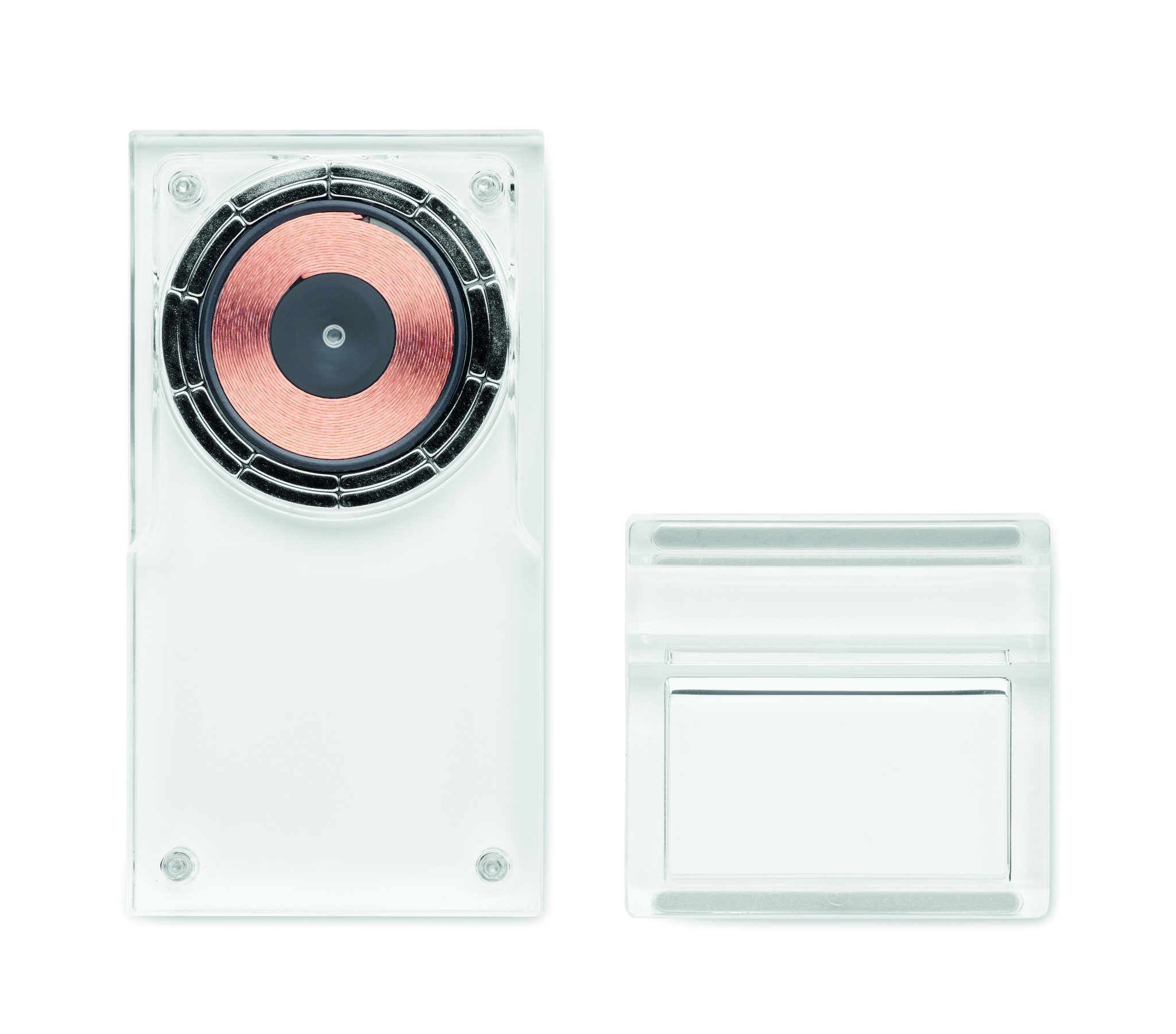Wireless charger (15W) in acrylic with phone stand. When connected to a power source, it will charge your mobile device. Output: 9V/1.67A (15W) for quick charging.