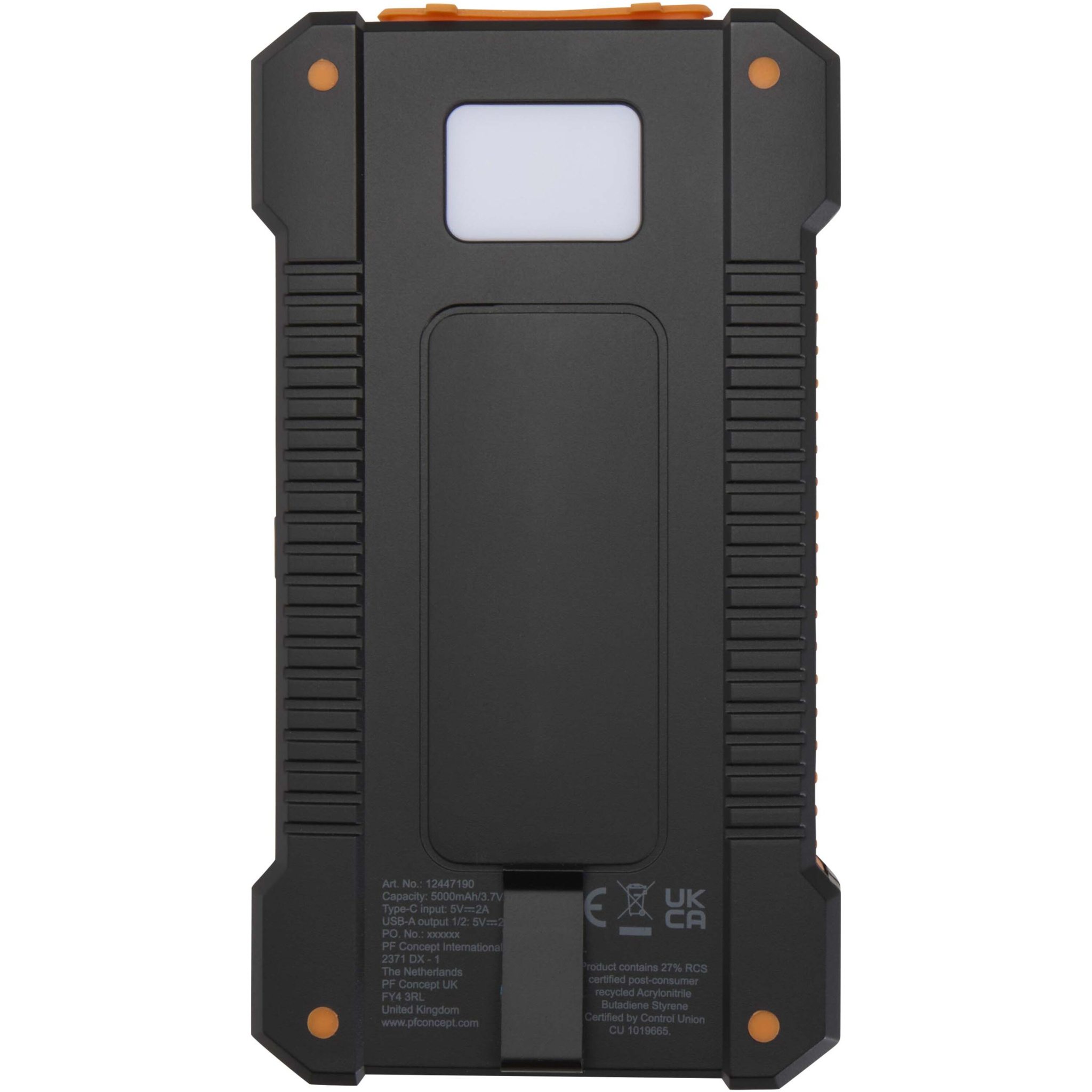 Altair 5000 мАч 10 Вт прочное портативное зарядное устройство из переработанного пластика с солнечной батареей и встроенным фонариком