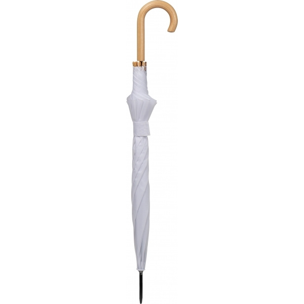 Автоматический зонт из полиэстера 190T с изогнутой деревянной ручкой и деревянными наконечниками. Ваш логотип будет напечатан на нижней части одного сегмента.