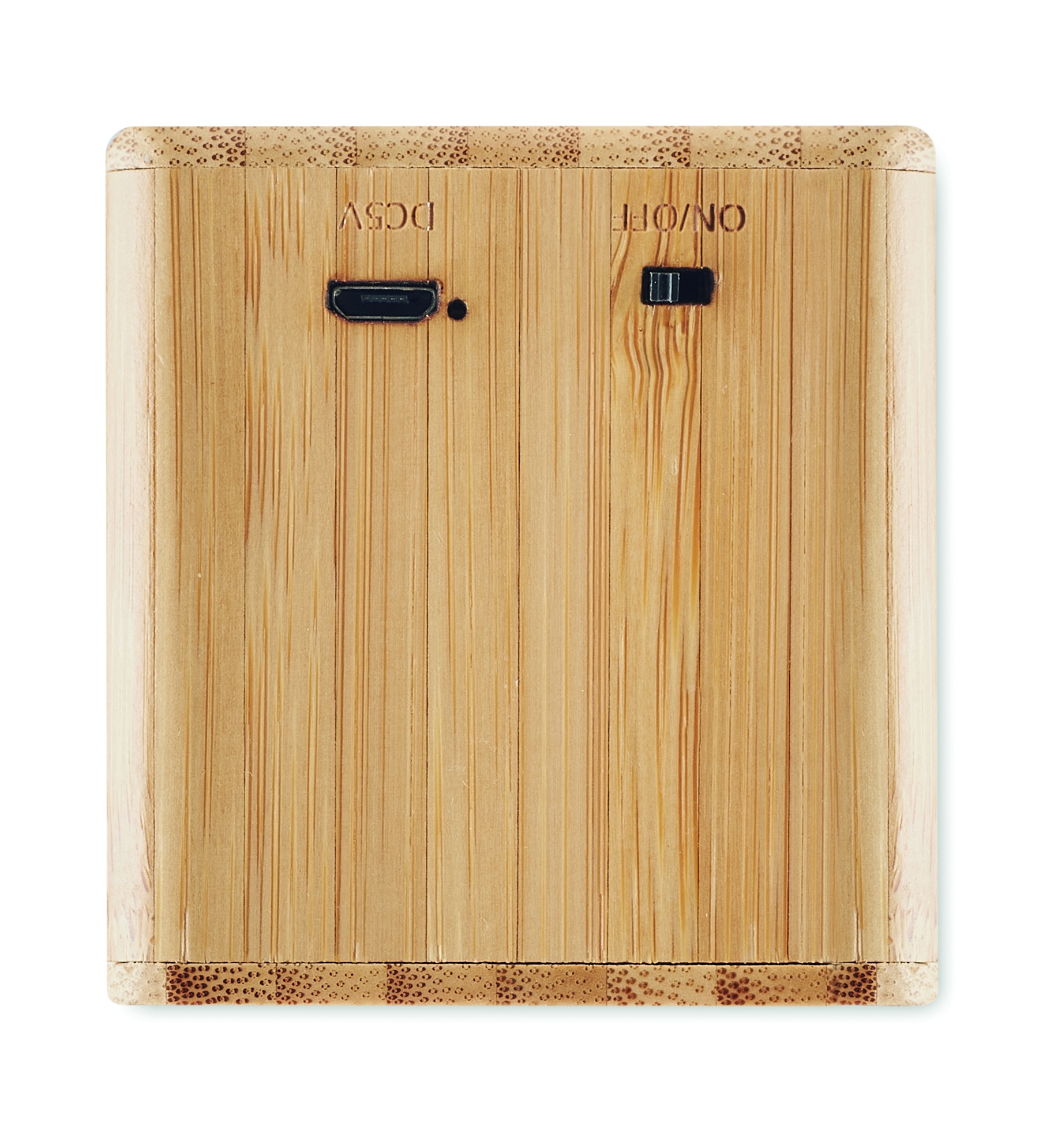 Колонка беспроводная 5.0 в бамбуковом корпусе со светодиодной подсветкой. В комплект входит 1 литиевая аккумуляторная батарея емкостью 500 мАч. Выходные данные: 3 Вт, 3 Ом и 5 В. Время игры ок. 4 часа при уровне громкости 70%.