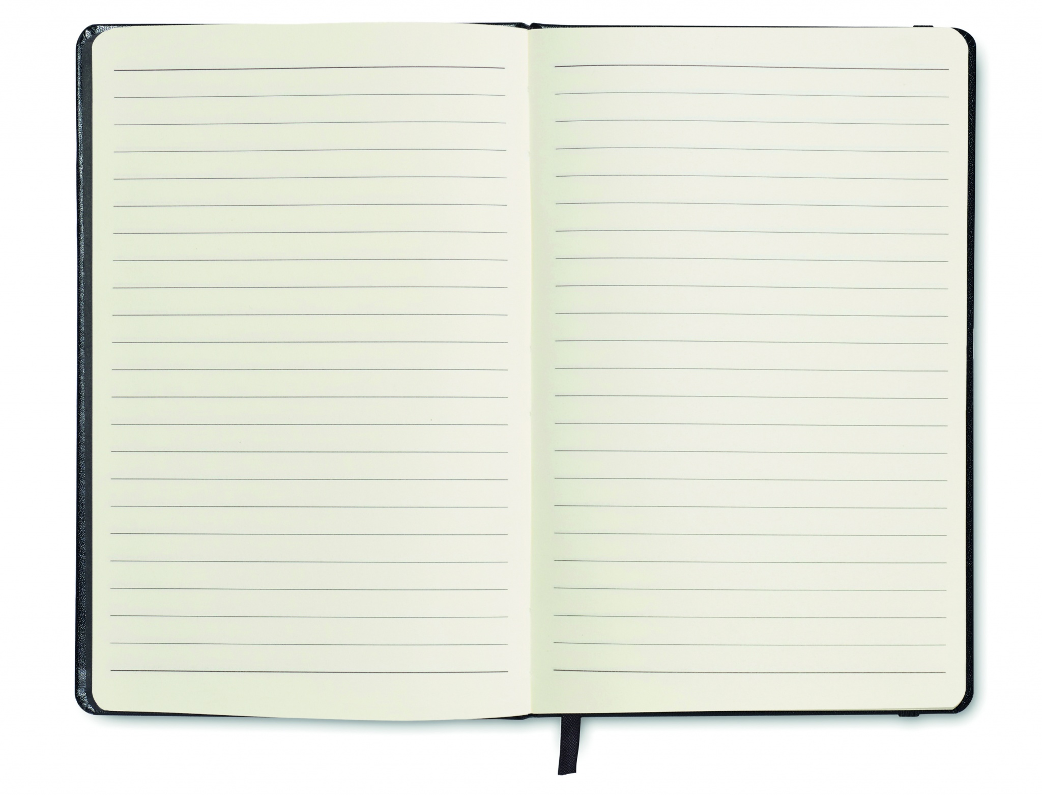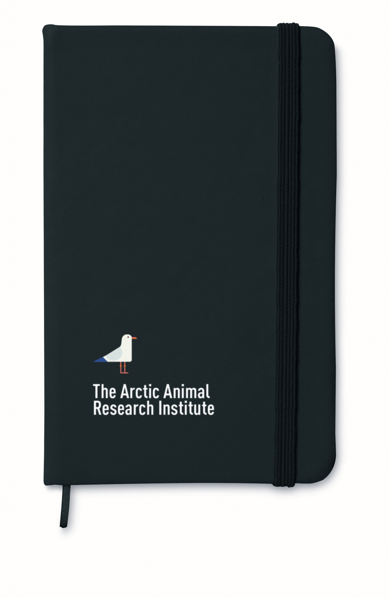 Блокнот формата А6 в обложке из полиуретана на резинке. 96 линованых страниц.