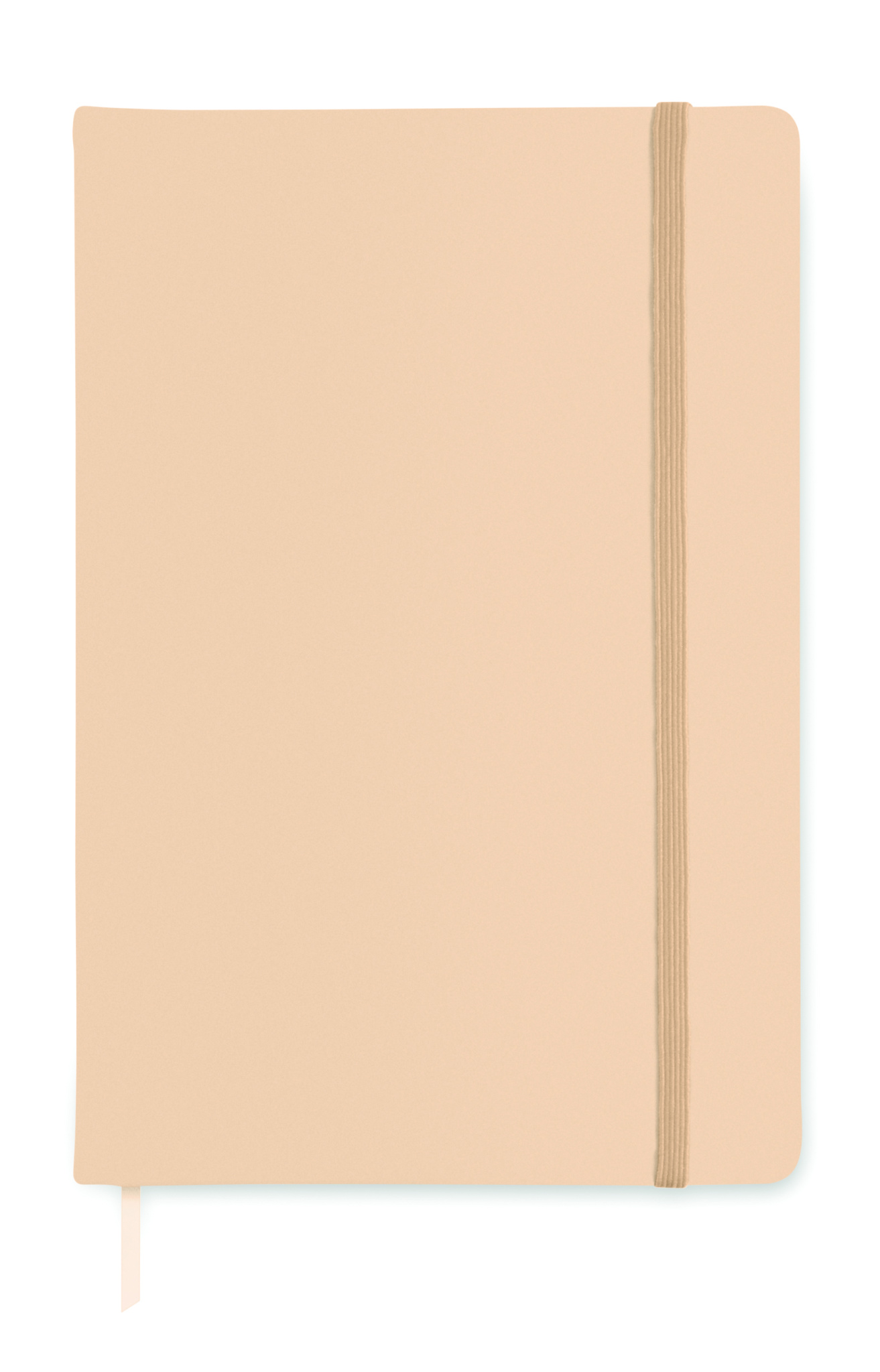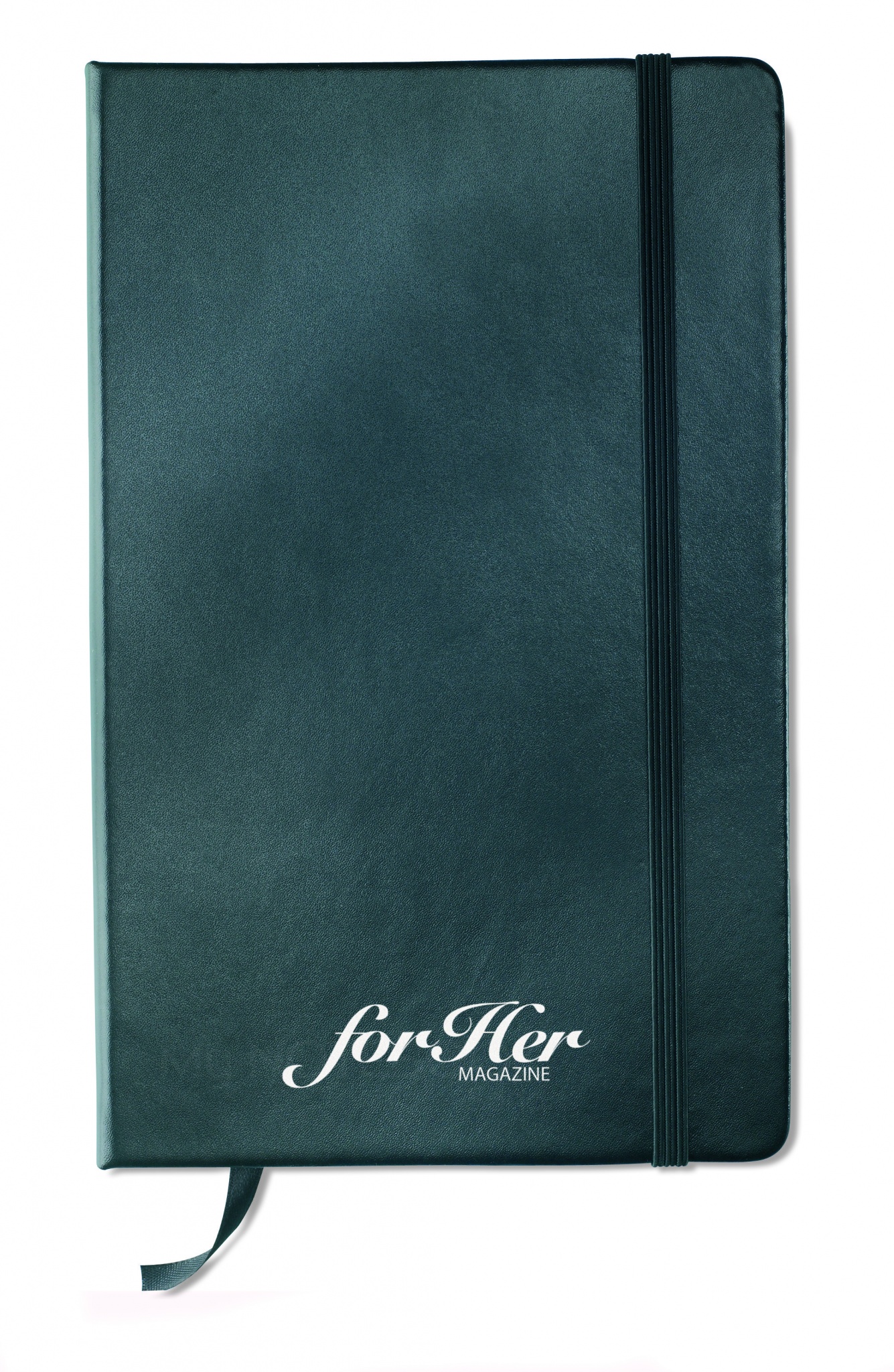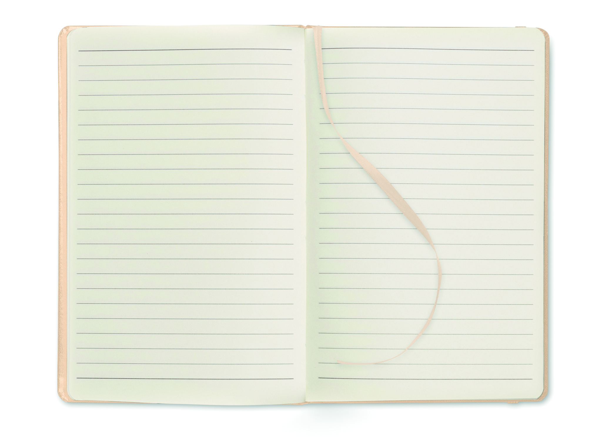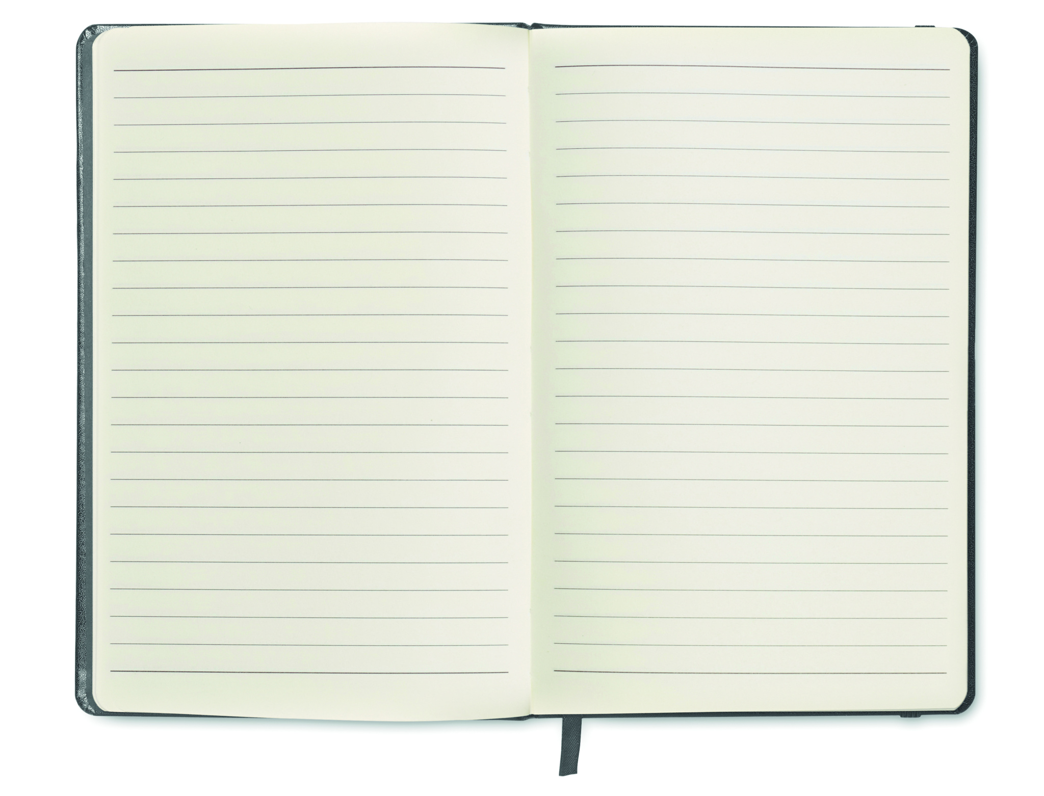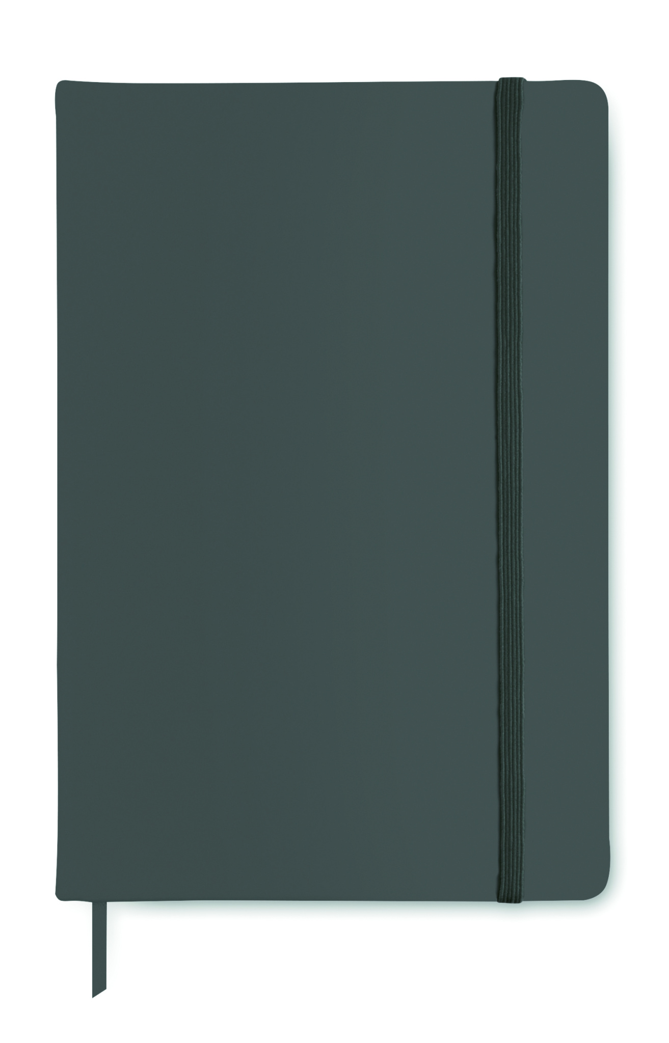 Блокнот формата А5 в обложке из полиуретана на резинке. 96 линованых страниц.