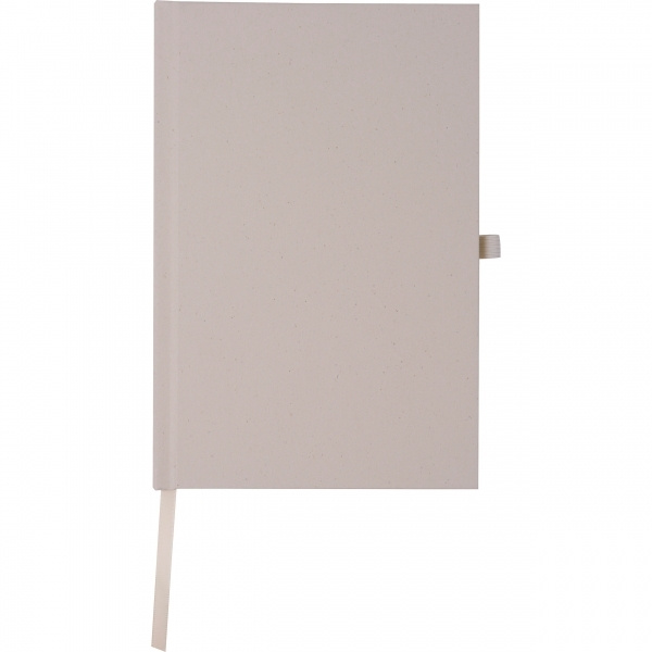 Блокнот формата А5 с обложкой из кокосовой скорлупы и 160 линованными страницами из переработанной бумаги. В блокноте также есть закладка и держатель для ручки. Ваш логотип напечатан на внешней стороне обложки.
