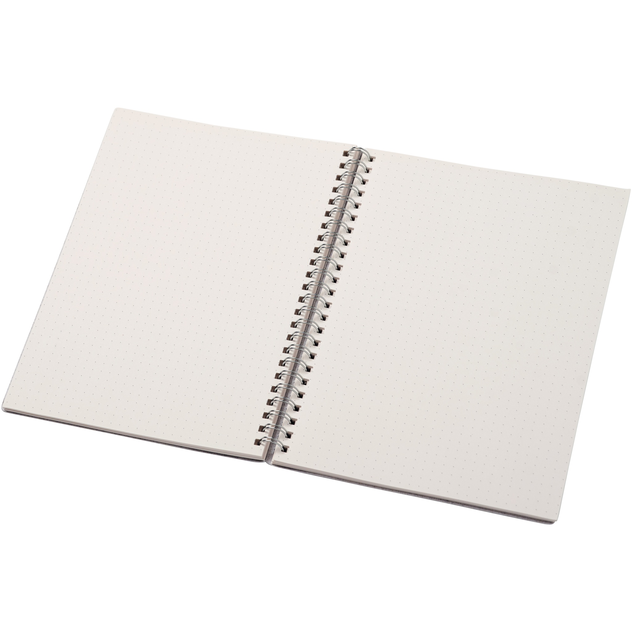 Блокнот формата A5. Обложка сертифицирована FSC, содержит отходы хлопка (15%) и переработанные бытовые отходы (40%). 80 листов плотностью 80 г/м2, 100% переработанная бумага (FSC), пунктирная разметка. Пунктирная разметка сочетает преимущества страниц без разметки, страниц в линию и клетку, обеспечивая структурирование и предоставляя место творчеству, что делает этот блокнот универсальным. Благодаря гребню блокнот удобно удерживать в горизонтальном положении и легко складывать. Сделано в Италии.