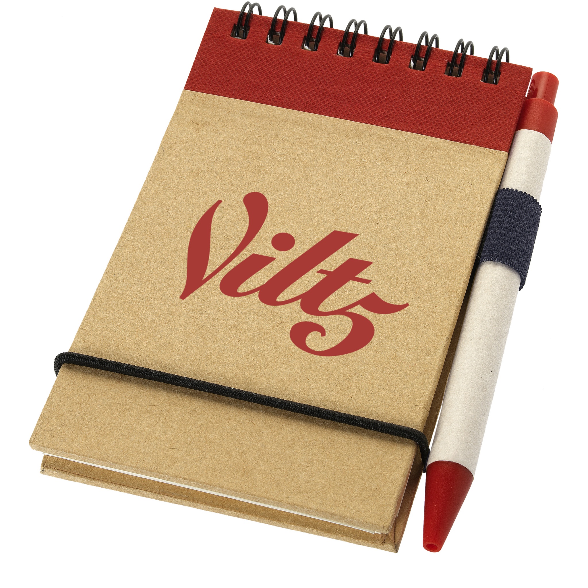 Записывать быстрые идеи легко с блокнотом Zuse recycled jotter с ручкой подходящего цвета. Маленький блокнот содержит 40 линованных листов A7 из эталонной переработанной бумаги, поэтому он хорошо помещается в любой маленькой или большой сумке, его легко держать в руках, и, кроме того, это экологичный выбор. Доступны различные варианты печати для нанесения любого логотипа на внешнюю сторону твердой обложки.