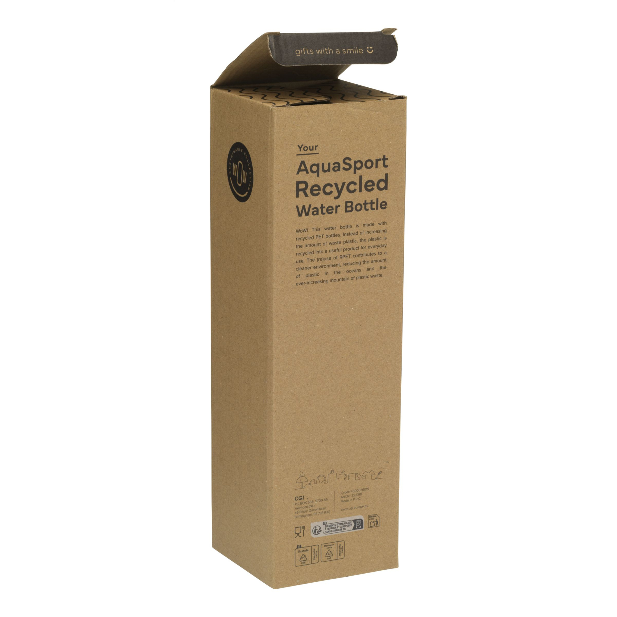 WoW! Функциональная бутылка для воды из переработанного ПЭТ. Крышка с резьбой оснащена носиком для питья с соломинкой, прозрачным защитным колпачком от протечек и грязи и системой блокировки. Управляется одной рукой и легко носить на петле для переноски/на запястье. С дисплеем содержимого в мл и унциях. Эта бутылка подходит для холодных напитков и идеально подходит для использования во время занятий спортом. Не подходит для мытья в посудомоечной машине. Емкость 1000 мл. Сертифицировано GRS. Общее количество переработанного материала: 66%. Каждый предмет поставляется в индивидуальной коричневой картонной коробке.