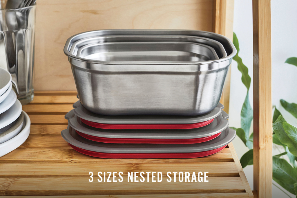 Этот набор из трех контейнеров для приготовления еды из нержавеющей стали, подходящих для микроволновой печи, разработан для повседневного использования — они легкие, прочные и герметичные. Будь то завтрак, обед или перекус, они идеально подходят для хранения продуктов, перекусов на ходу или блюд, которые можно разогреть в духовке. Каждый контейнер имеет инновационную стальную конструкцию, безопасную для использования в микроволновой печи, с вакуумной герметичной крышкой, которая дольше сохраняет свежесть продуктов. Полупрозрачная крышка позволяет сразу увидеть содержимое, а высококачественное основание из нержавеющей стали можно мыть в посудомоечной машине, замораживать и использовать в духовке (крышку нельзя использовать в духовке). Съемные уплотнители упрощают очистку. Уникальное вентиляционное отверстие на крышке позволяет разогревать еду в микроволновой печи, не снимая крышку, что сокращает время нагрева и предотвращает разбрызгивание. Эти контейнеры без BPA, разработанные для компактного хранения или штабелирования при использовании того же размера, предлагают продуманную функциональность для каждого приема пищи.