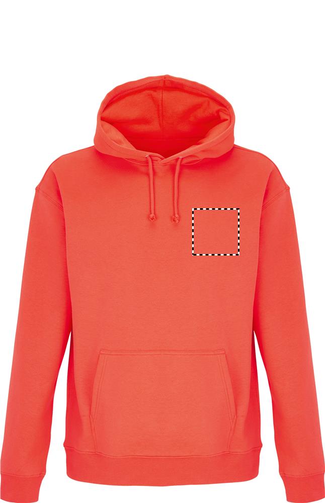 SOL'S CONDOR, Толстовка с капюшоном унисекс, 80% хлопка - 20% переработанного полиэстера, сертифицирована. Матовый флис 280 с втачными рукавами, манжеты, воротник и подол в рубчик 1X1. Карман-кенгуру, капюшон на подкладке с однотонным шнурком и металлическими люверсами. По поводу соответствия размеров, пожалуйста, обратитесь к таблице размеров в разделе документации к изделию.