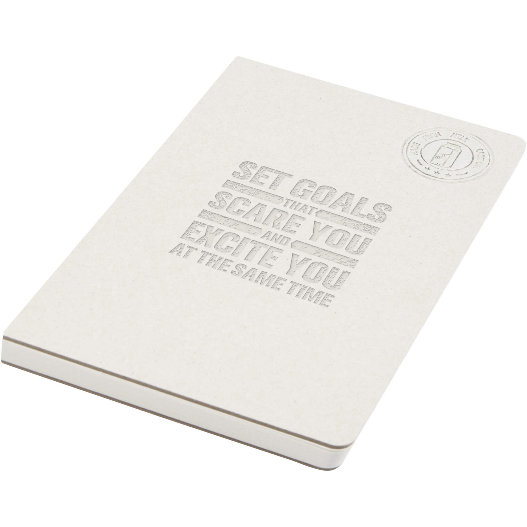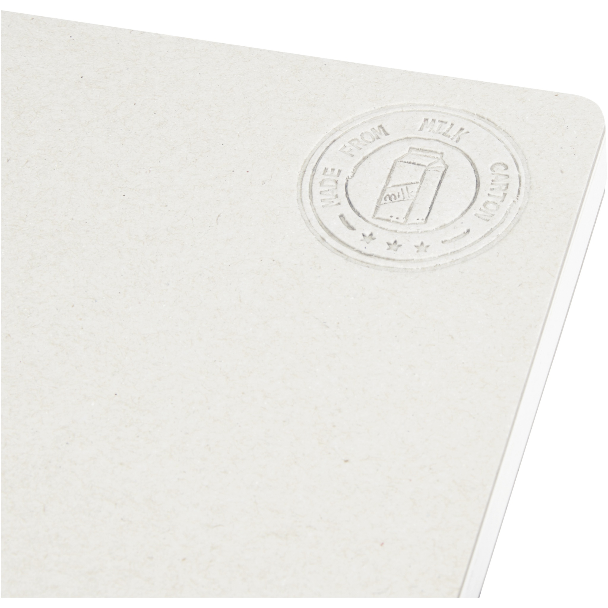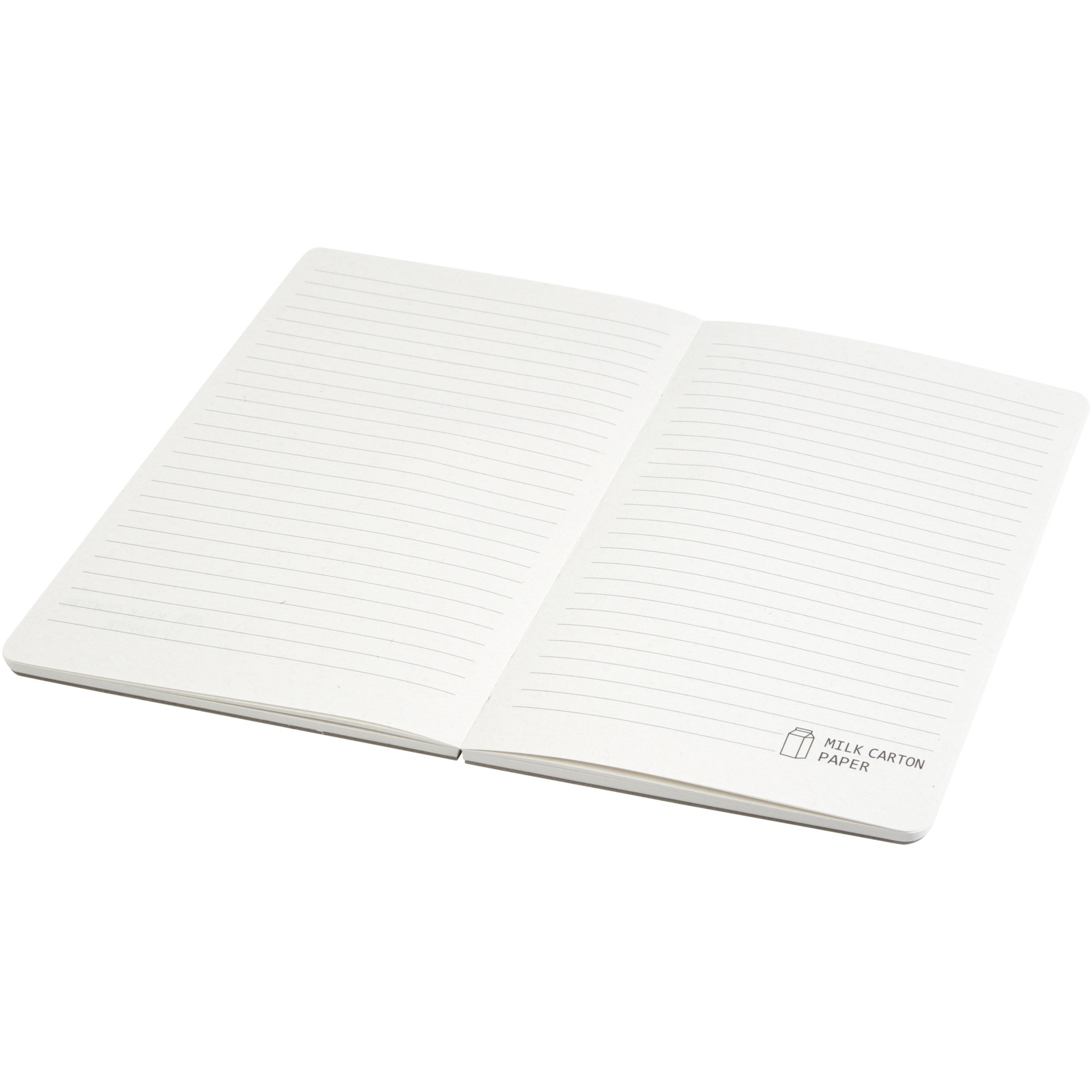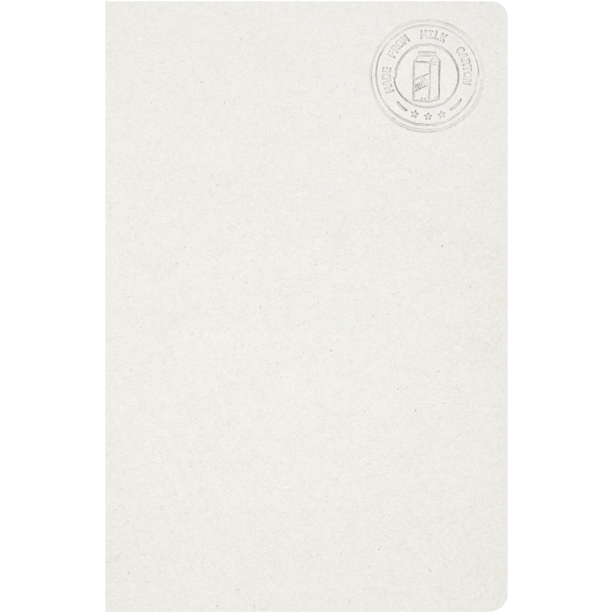 Мягкий блокнот для заметок форматом A5 с 80 линованными листами плотностью 80 г/м² из переработанных картонных коробок из-под молока (до 70%). Картонные коробки из-под молока собираются, сортируются, перерабатываются и превращаются в бумагу, таким образом действительно превращая мусор во что-то полезное.