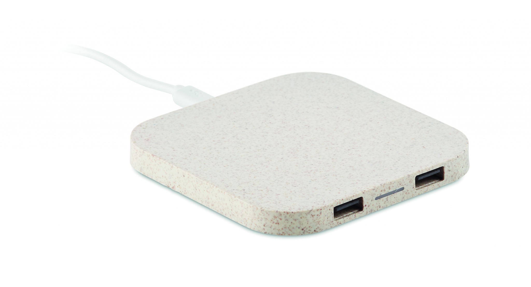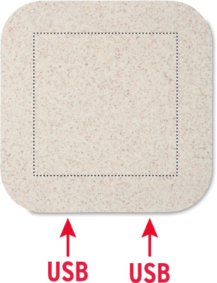 Коврик с беспроводной зарядкой в корпусе из пшеничной соломы (35%) и ABS (65%). Имеет 2 порта 2.0 и USB-порт. Выход DC5V/1A (5W). Совместимые новейшие андроиды, iPhone® 8, X и новее.