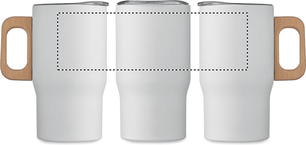 Double wall tumbler in recycled stainless steel (90% recycled stainless steel and 10% stainless steel) with wooden handle. Capacity: 350 ml.