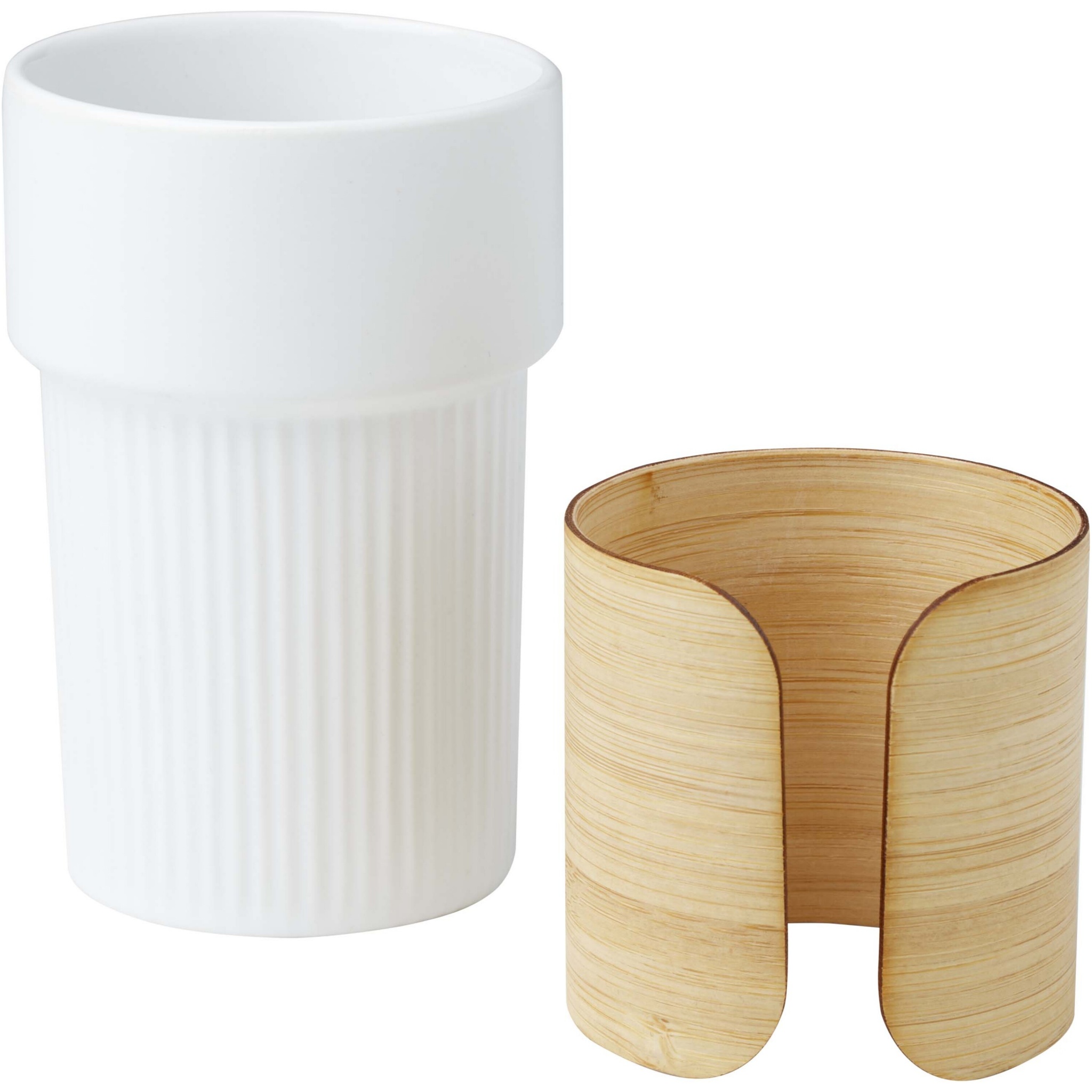Стильный керамический стакан Fika поставляется со съемным бамбуковым чехлом, который идеально подходит для питья горячих напитков. Используемый бамбук поступает из устойчивых, экологически чистых и социально ответственных источников. Объем: 340 мл. Поставляется в коробке из переработанного картона.
