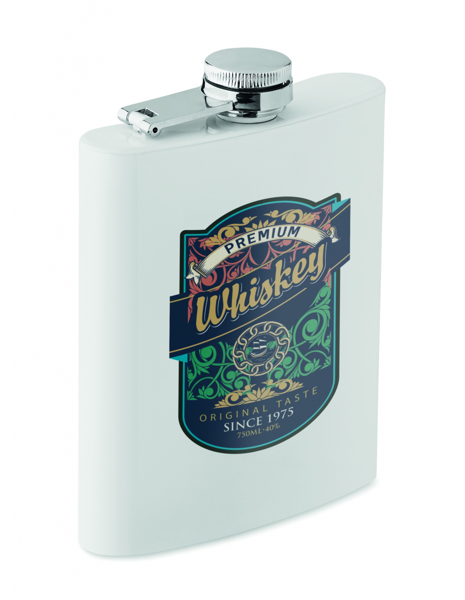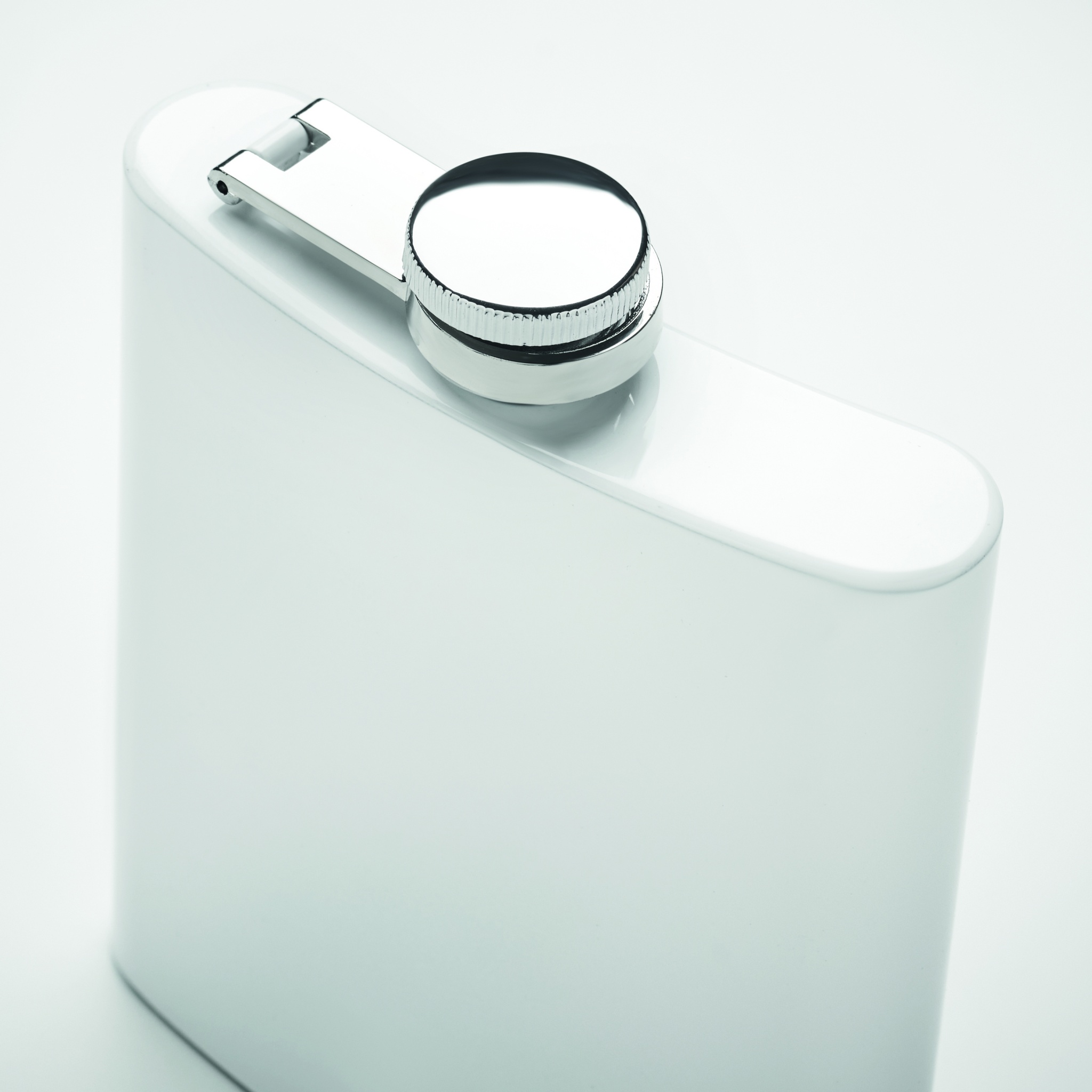 Фляга из переработанной нержавеющей стали 90% и 10% нержавеющей стали с покрытием для сублимации. Одностенная. Объем: 180 мл.
