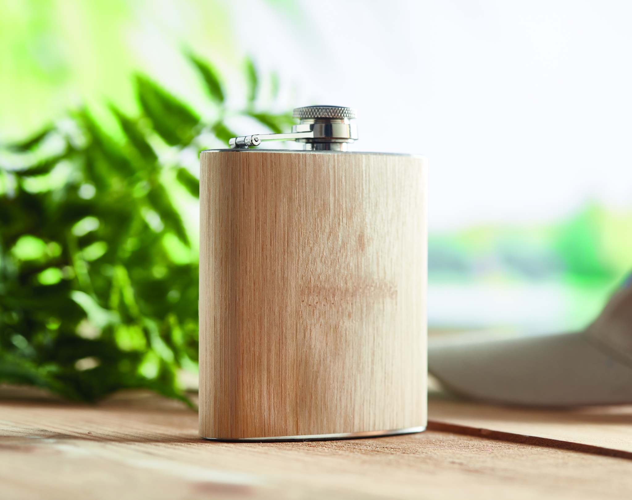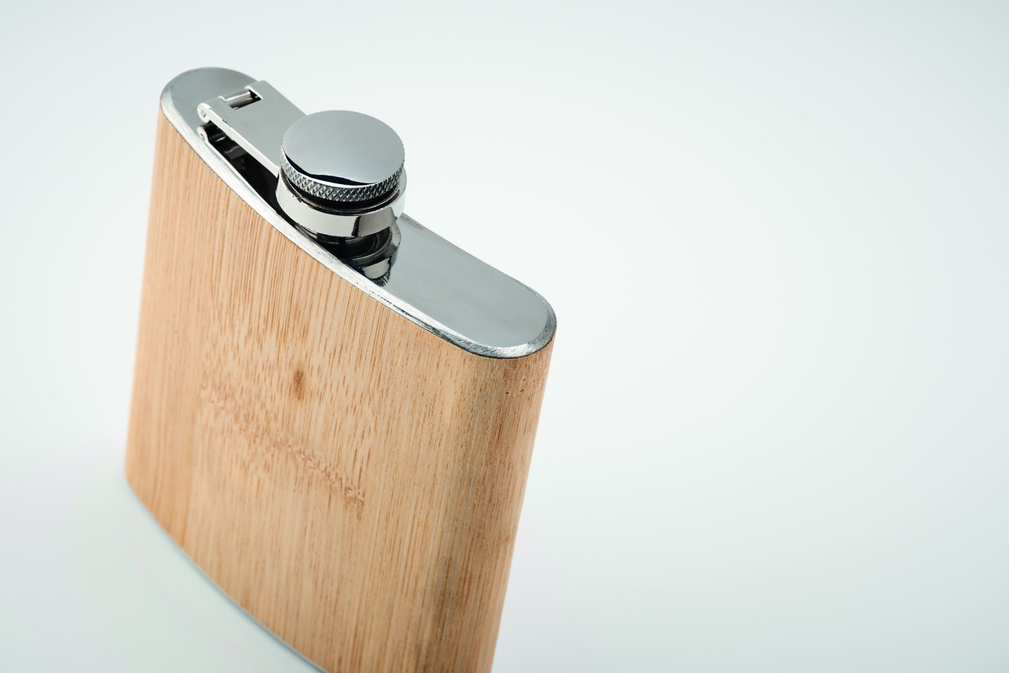 Фляга тонкая набедренная. Отделка из бамбука. Объем: 170 мл.