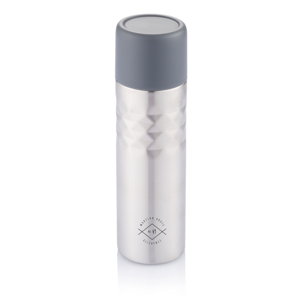 Mosa — это модная 500-миллилитровая термос с двойными стенками из прочной нержавеющей стали 201. Термос закрывается крышкой из полипропилена, которую можно использовать для наслаждения горячими напитками. Зарегистрированный дизайн®