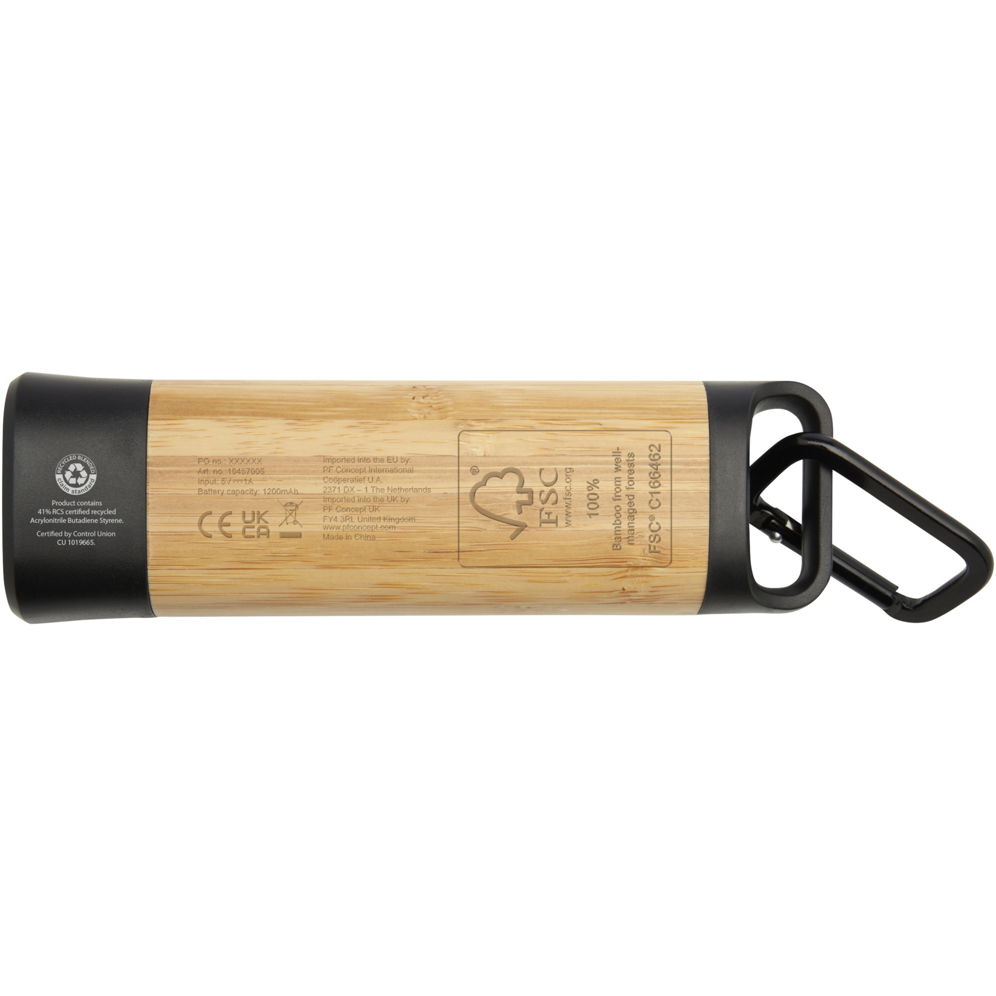 Фонарик Kuma с карабином изготовлен из сертифицированного бамбука и на 41% из переработанной пластмассы, сертифицированной RCS, что делает его более экологичным выбором для прогулок на свежем воздухе, выполнения проектов своими руками или устранения перебоев в подаче электроэнергии. Обладая мощным источником света COB мощностью 3 Вт, доступным в 3 различных режимах освещения, Kuma производит свет мощностью 80 люмен с дальностью луча до 100 метров при полной зарядке. Оснащенный литий-ионным аккумулятором 18650 емкостью 1200 мАч, фонарь гарантирует долговечность и надежность, обеспечивая 3,5-4,5 часа непрерывного освещения на одном заряде. Входящий в комплект алюминиевый карабин позволяет легко прикрепить его к рюкзаку, ремню или снаряжению, что делает его надежным спутником в походе или во время пешего туризма. Поскольку бамбук — природный материал, цвет и размер сырья могут быть разными, что, в свою очередь, может повлиять на итоговый вид печати. Поставляется с зарядным кабелем TPE Type-C длиной 30 см и упаковано в подарочную коробку STAC из экологически чистых источников.