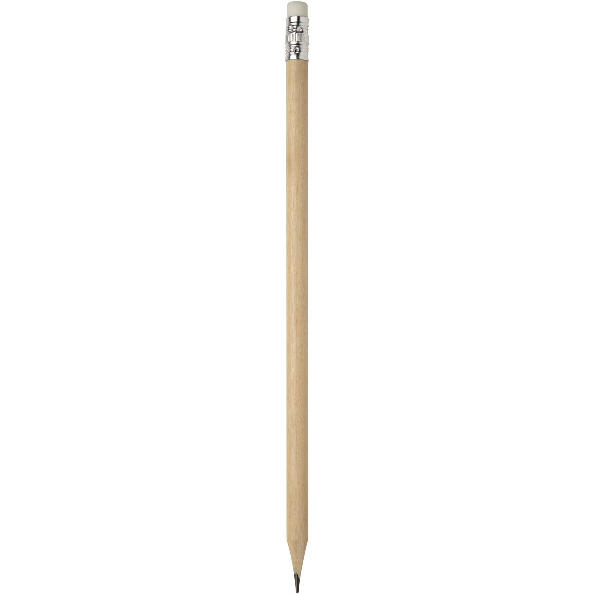 Карандаш с ластиком. Карандаш изготовлен из тополевой древесины, ластик — из графита, а обойма — из алюминия.