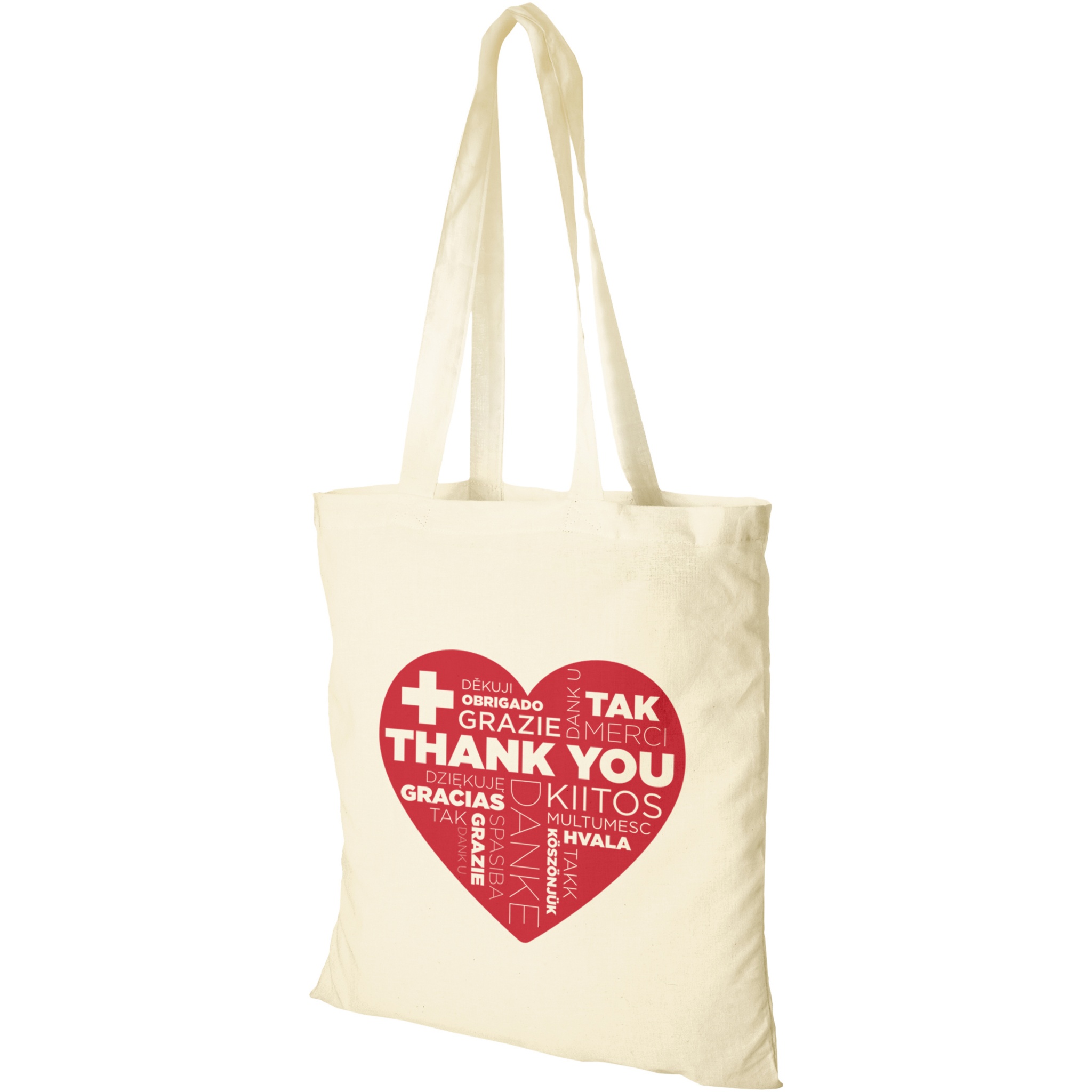 Сумка-тоут Madras - идеальная сумка для раздачи во время любого мероприятия, конференции или для использования в качестве хозяйственной сумки для мелких продуктов. Плотность хлопка 140 г/м² делает сумку прочной, долговечной и подходящей для переноски тяжелых предметов в основном отделении. Благодаря плечевым ручкам длиной 30 см эту сумку-тоут легко носить с собой. Сделано в Индии и сертифицировано OEKO-Tex. Выдерживает вес до 5 кг.