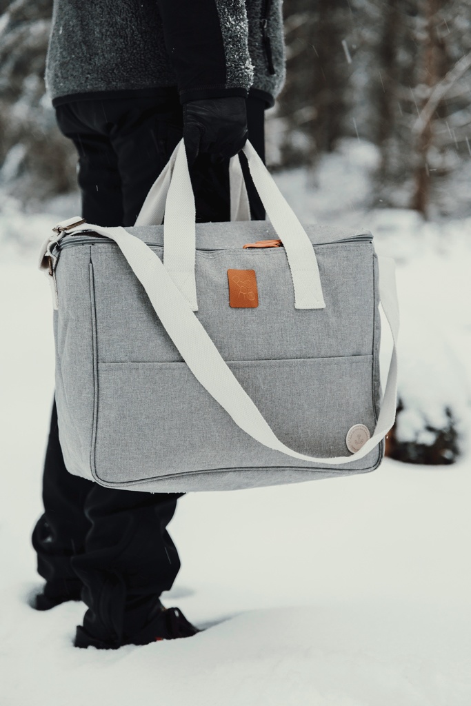 Эта просторная корзина-холодильник с крышкой означает конец старым скучным пластиковым версиям. Сумка-холодильник из меланжевой ткани с деталями из ПУ, что делает ее такой же нарядной, как и обычная сумка. Подкладка из PEVA сохраняет прохладу в течение длительного периода времени, а также легко чистится. Обе с плечевым ремнем и ручками.